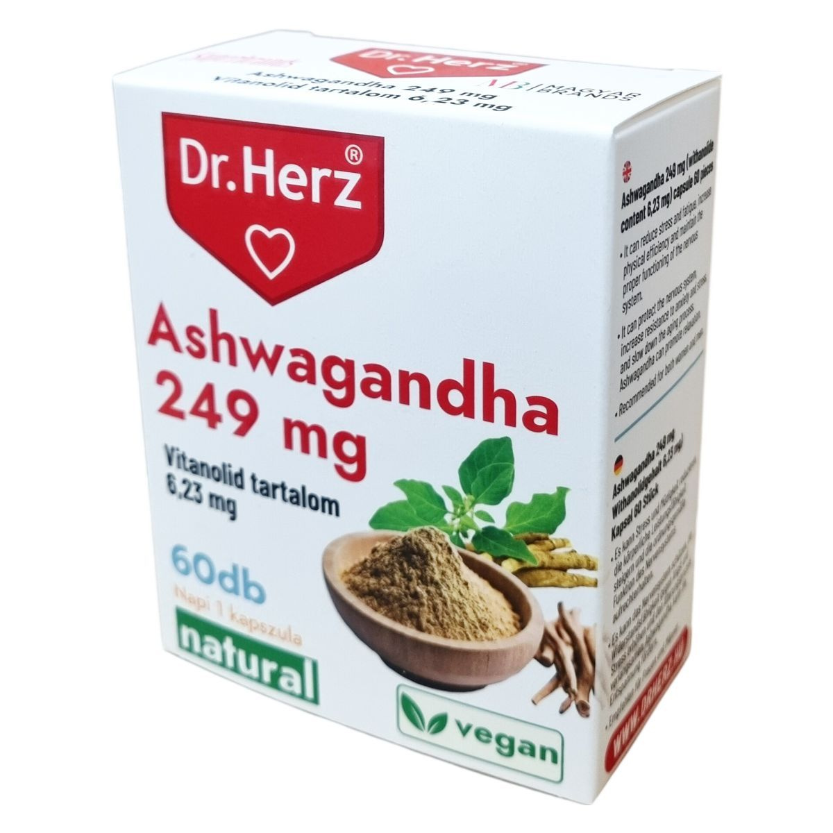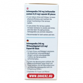 Az ashwagandha (Withania somnifera) az adaptogén gyógynövények csoportjába tartozó növény, amelyet elsősorban a stresszadaptáció és az idegrendszeri egyensúly támogatására alkalmaznak. Fő bioaktív vegyületei a withanolidok, amelyek szerepet játszhatnak a hipotalamusz–hipofízis–mellékvese (HPA) tengely szabályozásában, valamint antioxidáns és gyulladásos folyamatokat moduláló mechanizmusokon keresztül hathatnak. Az idegrendszerre és az endokrin rendszerre gyakorolt hatása révén hozzájárulhat a mentális terheléshez való alkalmazkodáshoz és az általános vitalitás fenntartásához. Az adaptogének csoportjaként rendszerszintű hatást fejthet ki a stresszválasz finomhangolásában. Megfelelő adagolás mellett általában jól tolerálható, azonban egyéni érzékenység előfordulhat. Egyéni egészségügyi állapot vagy gyógyszerszedés esetén javasolt szakemberrel konzultálni.