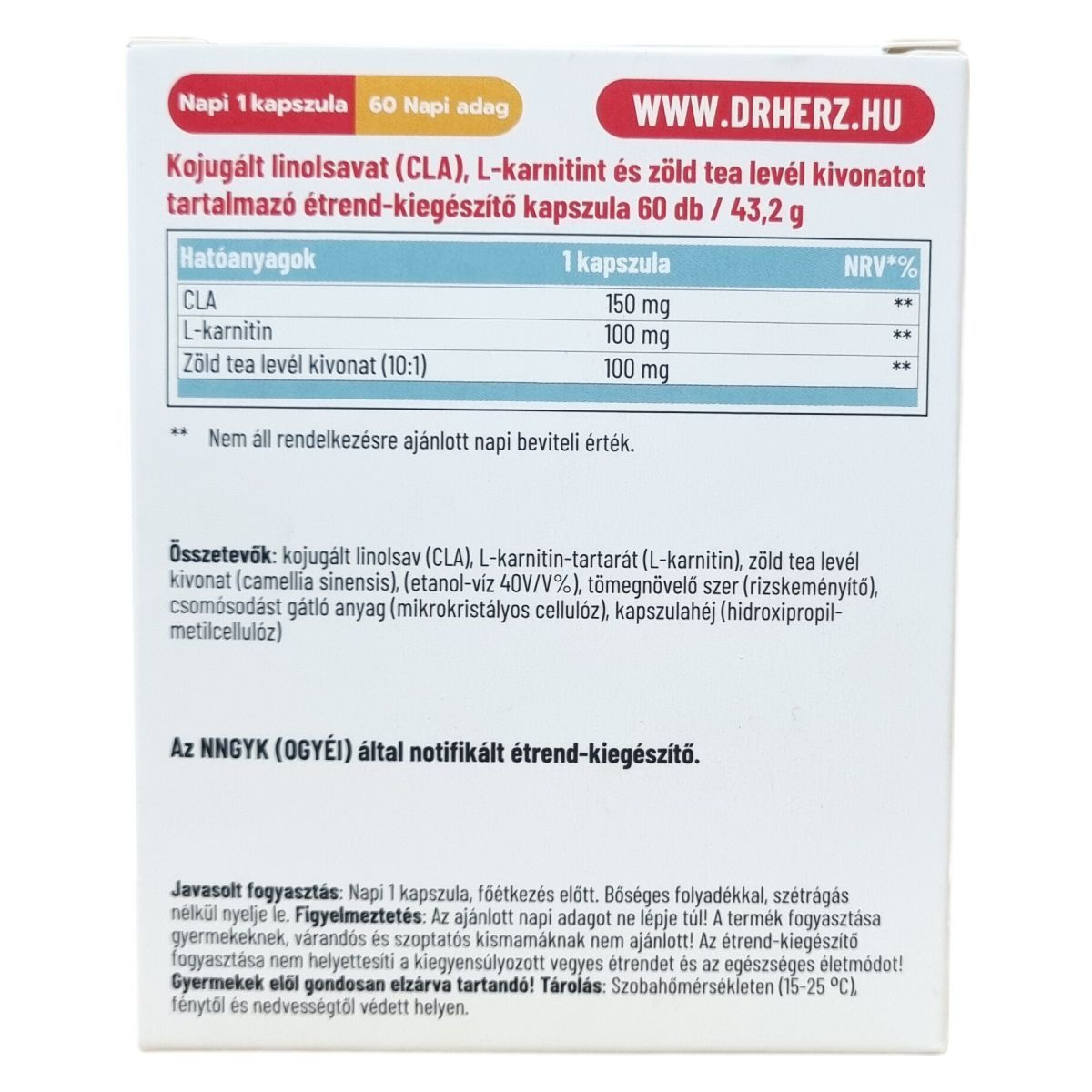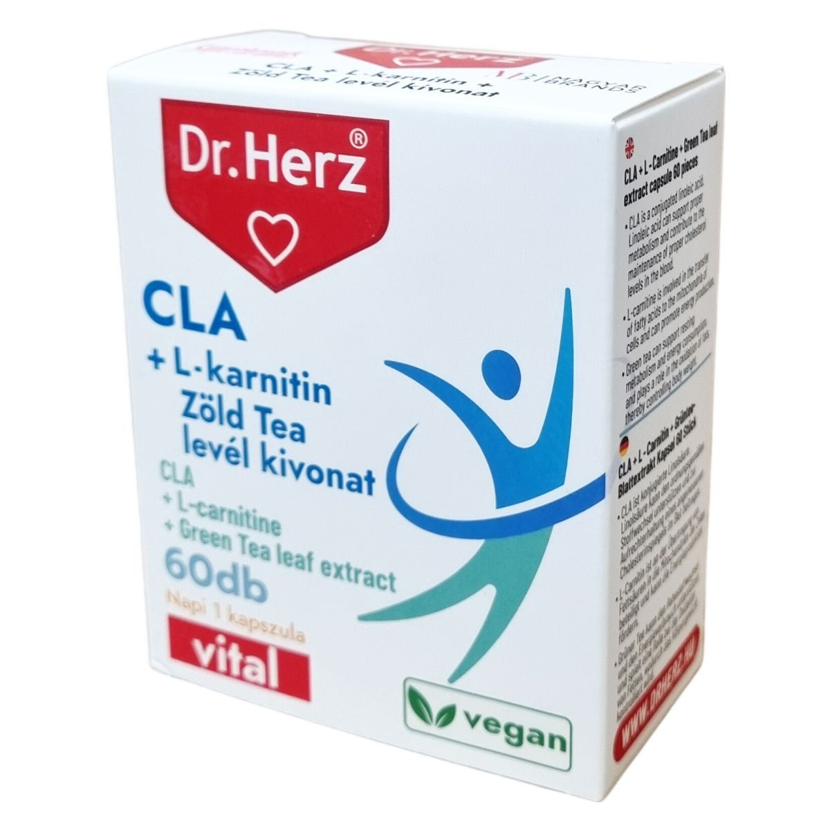A Dr. Herz CLA + Zöld tea + L-karnitin a három hatékony anyagcsere-fokozó összetevő kombinációja kapszula formában.