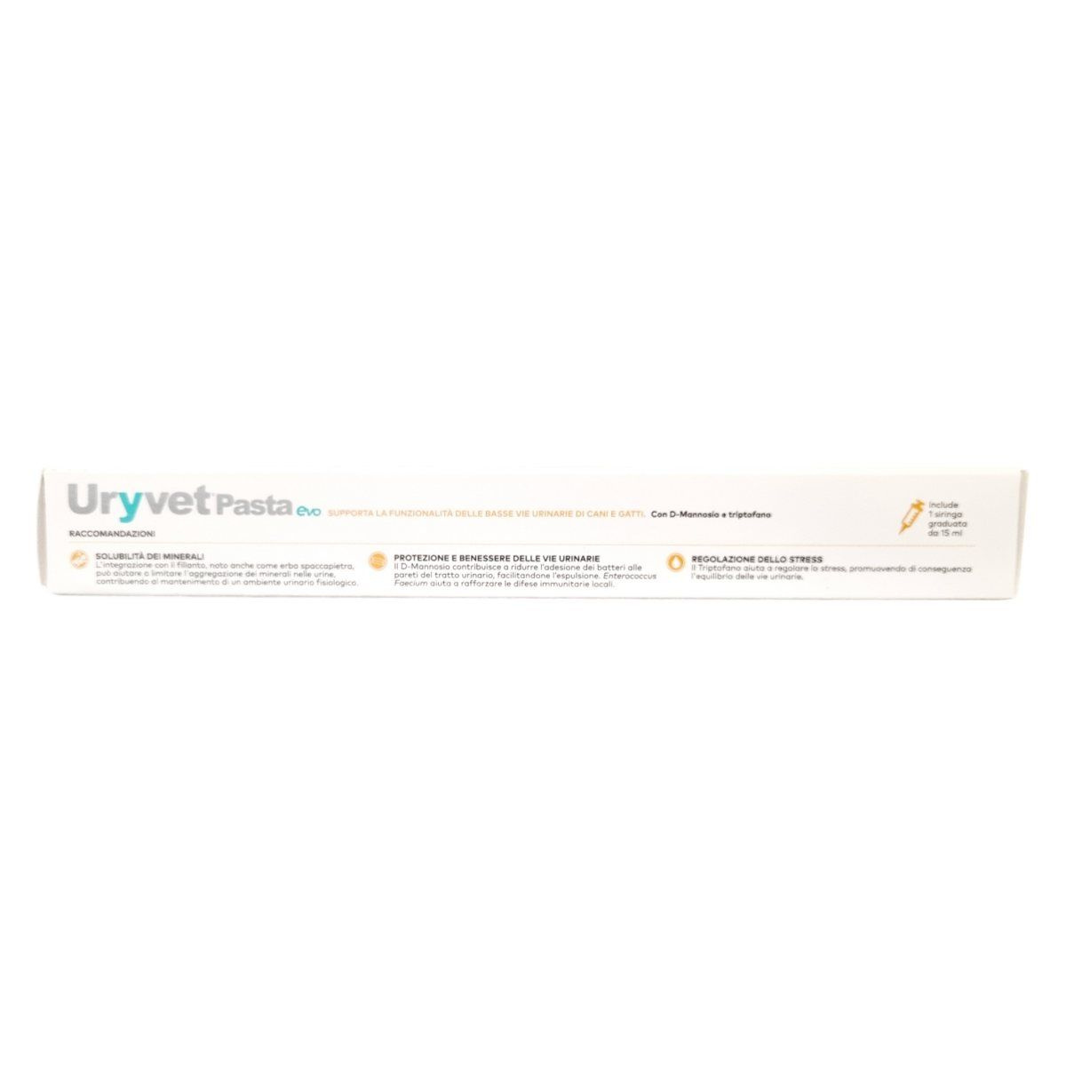 Az Uryvet Pasta evo olyan állatgyógyászati gyógyhatású készítmény, amely természetes összetevői révén támogathatja a kutyák és macskák alsó húgyúti rendszerének egészségét. A D-mannóz és az Enterococcus faecium hozzájárulhat a húgyutak mikrobiológiai egyensúlyának fenntartásához, a triptofán segítheti a stressz csökkentését, míg a C-vitamin antioxidánsként támogathatja a szervezet védekezőképességét. A paszta formátum könnyű adagolást biztosít, így ideális választás a húgyúti komfort megőrzésére hajlamos állatok számára.