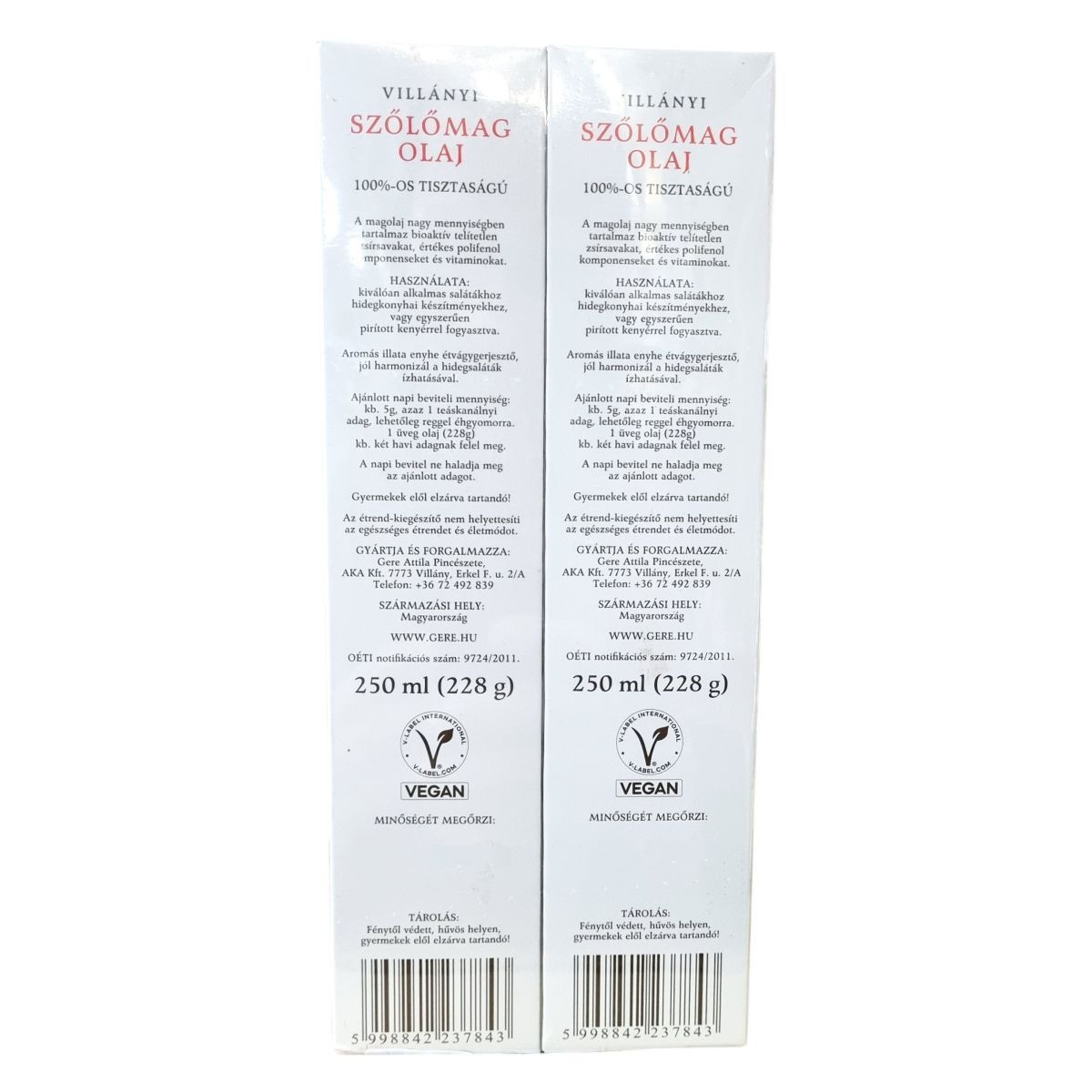Gere villányi szőlőmag olaj duopack 2x250ml 500ml leírása