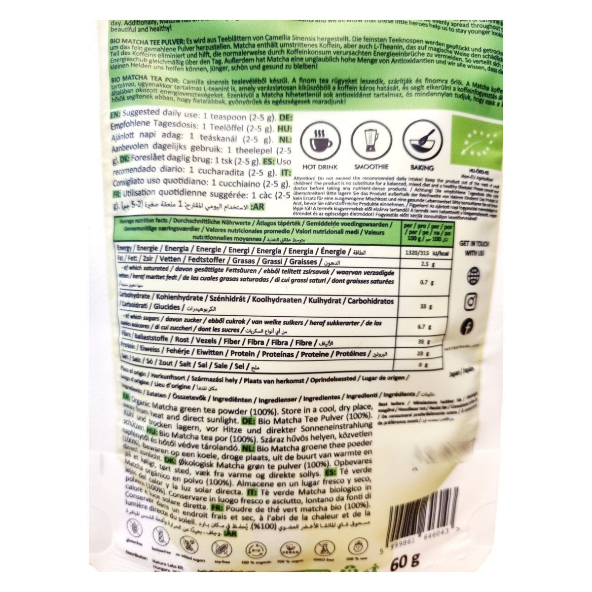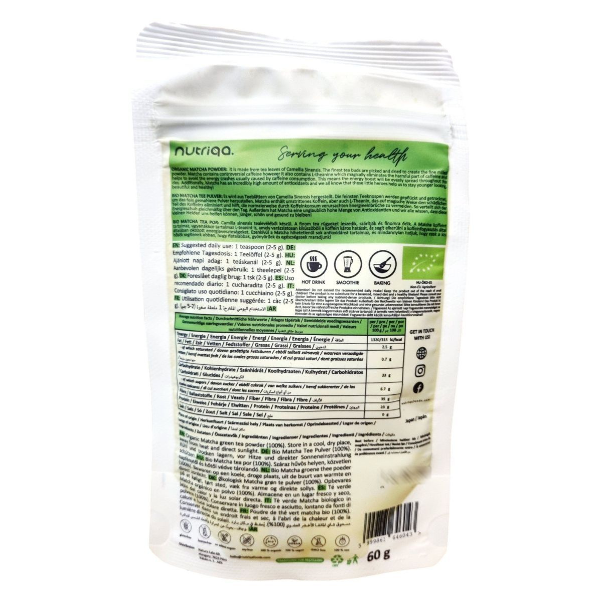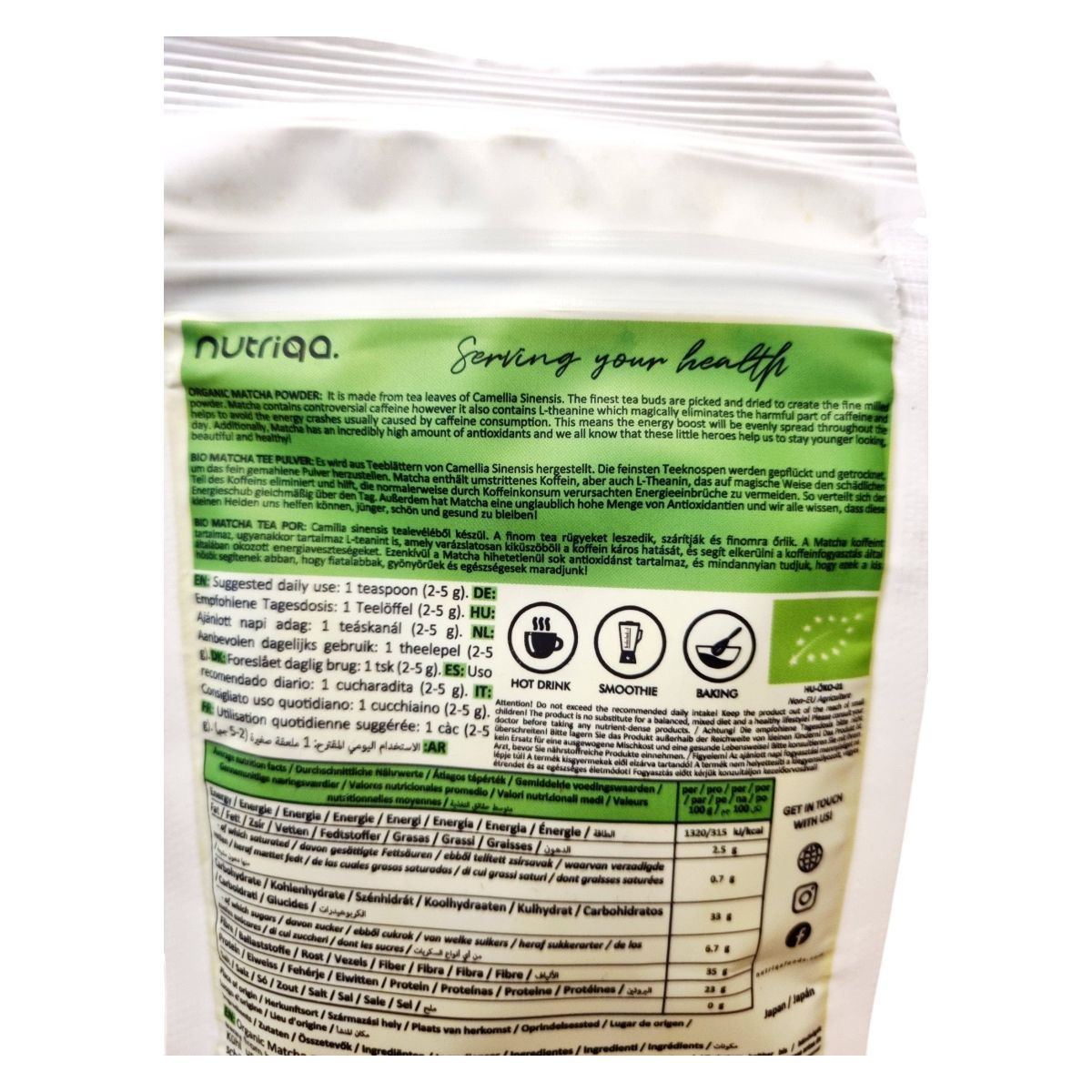A Nutriqa Organic Matcha Powder egy prémium minőségű, 100%-ban bio zöld tea por, amely L-teanint és antioxidánsokat tartalmazó természetes energiaforrás. A matcha a Camellia sinensis növény fiatal leveleiből készül, amelyeket finom porrá őrölnek, így minden tápanyag teljes mértékben hasznosul. Az L-teanin segíthet a koffein hatásainak kiegyensúlyozásában, elősegítheti a koncentrációt és a nyugodt éberséget. A magas antioxidáns-tartalom hozzájárulhat a sejtek védelméhez és az általános vitalitás fenntartásához. A matcha ideális választás azoknak, akik természetes módon szeretnék támogatni energiaszintjüket, koncentrációjukat és immunrendszerüket. A termék 100%-ban növényi eredetű, bio, glutén- és laktózmentes, valamint mesterséges adalékanyagoktól mentes.