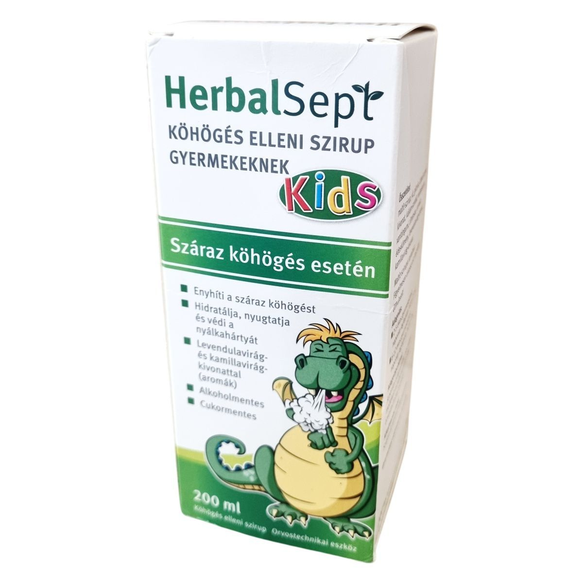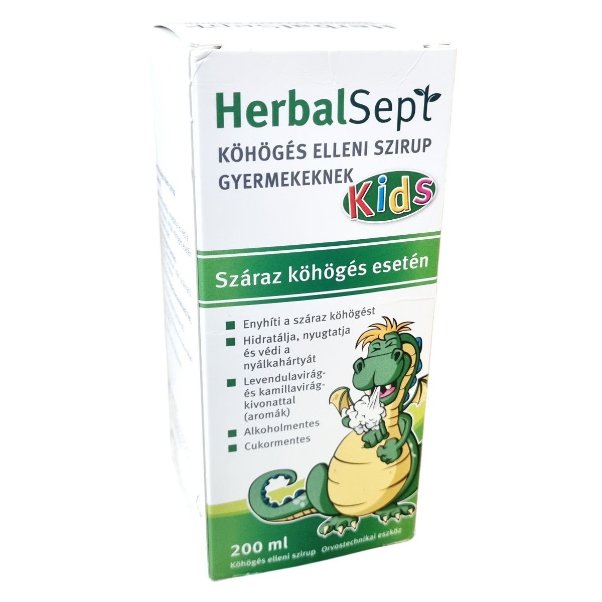 A HerbalSept köhögés elleni szirup gyermekeknek szánt orvostechnikai eszköz, amely száraz és irritáló köhögés esetén támogathatja a köhögési inger enyhítését. Készül alkohol- és cukormentes formulával, természetes levendulavirág- és kamillavirág-kivonat aromáival. A pontos adagoláshoz a termékhez adagolópohár is tartozik, amely orvostechnikai eszköz minősítésű. A termék használati útmutatójának pontos betartása javasolt a biztonságos alkalmazás érdekében.