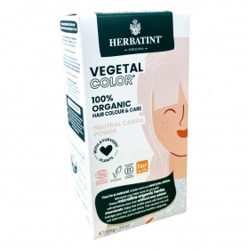 A Herbatint Vegetal Color Neutral Cassia Power egy 100% organikus növényi hajszínező por, amely tisztán természetes összetevőkből készül, kémiai adalékanyagok nélkül. A termék 5000 éves ayurvédikus hagyományok szolgálatában fejti ki hatását, mikrofine, organikus növényi porokból áll, amelyek táplálják, fényessé teszik a hajat és egészségesen ragyogóvá varázsolják azt. A cassia és aloe vera hatékonyan táplálják, védik és helyreállítják a haj szerkezetét, miközben a természetes színt támogatják – továbbá a készítmény bármilyen hajtípusra alkalmas, a natúr haj fényét és térfogatát növeli. A csomagolás csökkenti a hulladékot, nem tartalmaz felesleges eszközöket és a zacskók PE anyagból, a doboz papírból készült. A termék dermatológiailag tesztelt, vegán, illetve fair trade és környezetbarát minősítésekkel rendelkezik, a vállalat elkötelezett a fenntartható működés és a természet védelme iránt, és tagja az 1% for the Planet kezdeményezésnek. Használatával nemcsak haját kényezteti, de hozzájárul a Föld megóvásához is.