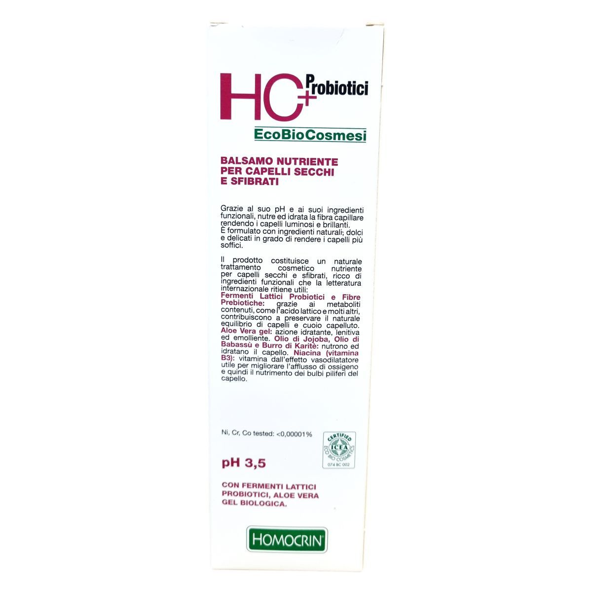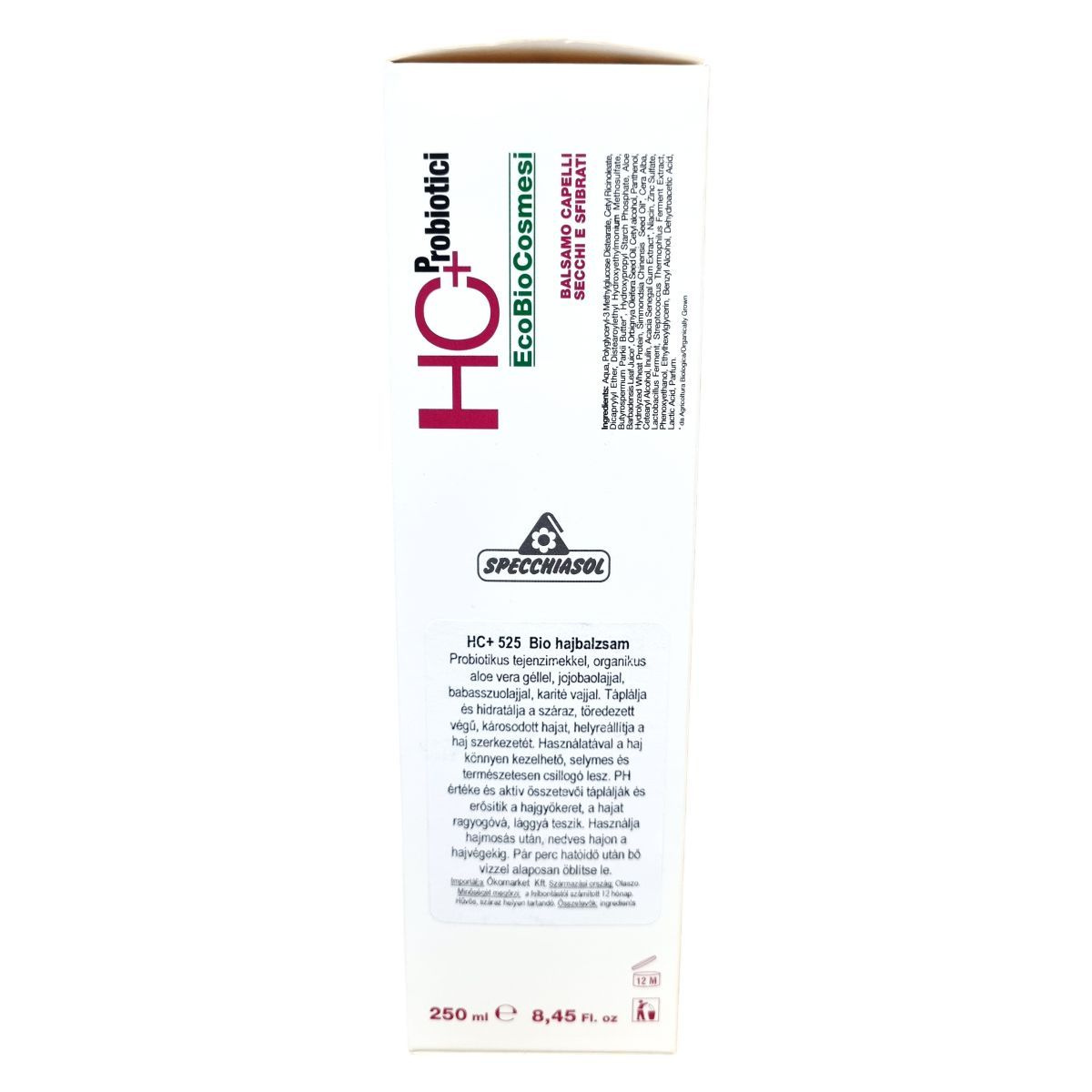A HC+ Probiotici Bio hajbalzsam kíméletes, természetes összetevőkkel készült, melynek pH-értéke 3,5. Probiotikus tejenzimeket és prebiotikus rostokat tartalmaz, amelyek támogatják a fejbőr és a haj természetes egyensúlyát. Az aloe vera gél hidratáló, nyugtató és bőrnyugtató hatású. A jojoba- és babasszuolaj, valamint a karité vaj táplálja és hidratálja a hajat, segítve annak egészséges megjelenését. A niacin (B3-vitamin) fokozza a fejbőr vérkeringését, elősegítve a hajhagymák tápanyagellátását. A termék mentes SLES-től és parabénektől, természetes és bőrbarát megoldás a száraz, töredezett hajra. Használata után a haj lágy, ragyogó és könnyen fésülhető lesz.