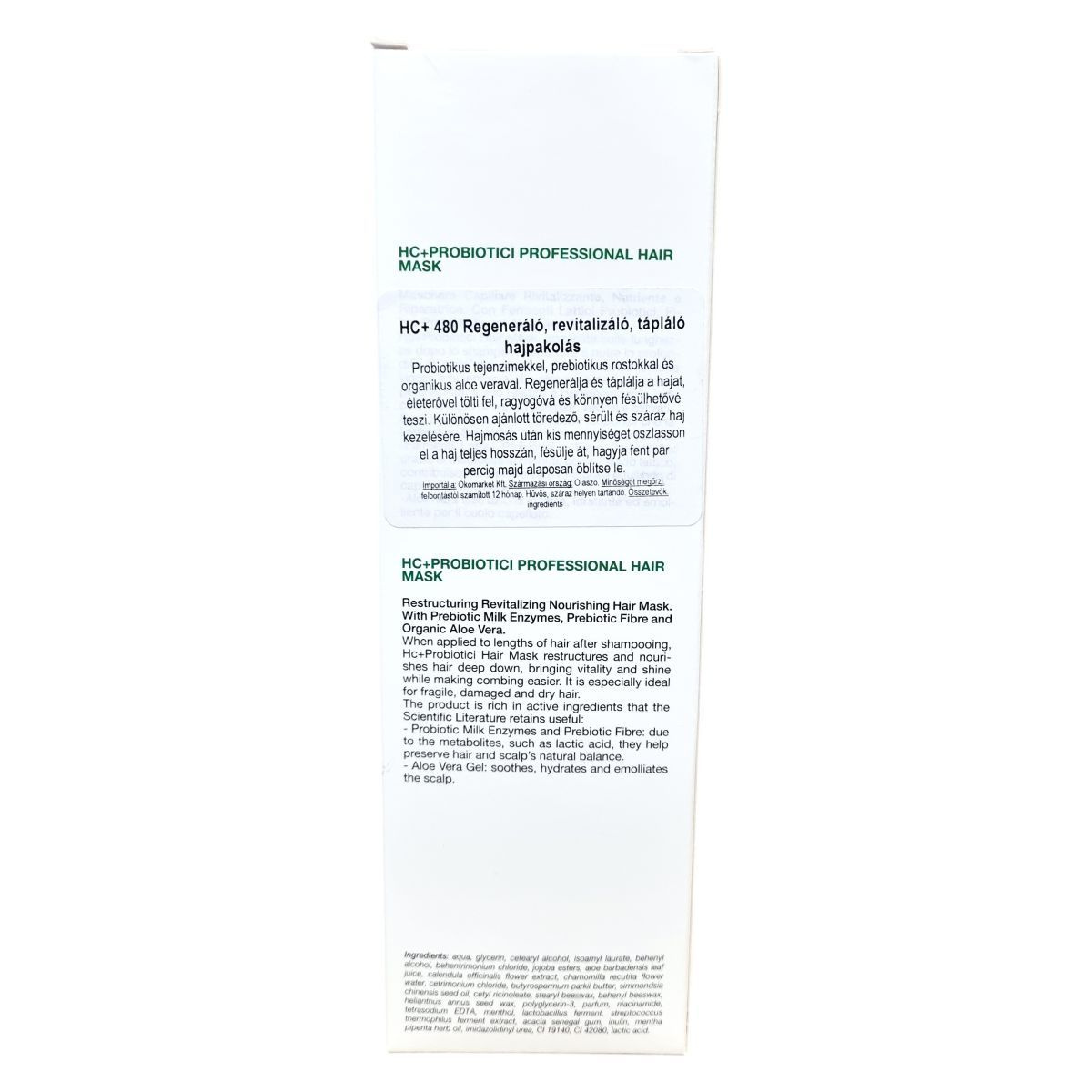 A HC+ Probiotici hajpakolás probiotikus tejenzimeket, prebiotikus rostokat és organikus aloe verát tartalmaz. A termék hatékonyan regenerálja és táplálja a hajat, erősíti, fényt és rugalmasságot ad neki, megkönnyítve a kifésülést. Különösen ajánlott a töredezett, sérült és száraz haj ápolására. A probiotikus összetevők elősegítik a fejbőr és a haj természetes egyensúlyának megőrzését, míg az aloe vera nyugtató, hidratáló és puhító hatású. A termék Olaszországban készült, 250 ml kiszerelésben érhető el.