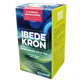 Az IBEDE KRON Kurkuma és zöld tea kapszula olyan étrend-kiegészítő, amely vitaminokat (D3-, B12-vitamin), cinket és növényi kivonatokat (kurkuma és zöld tea) tartalmaz. A cink hozzájárulhat a makrotápanyagok, zsírsavak és szénhidrátok normál anyagcseréjéhez, valamint az oxidatív stresszel szembeni védelméhez. A B12-vitamin részt vehet az energianyerés anyagcsere-folyamataiban, a normál vörösvérsejt-képződésben és a homocisztein-anyagcserében, továbbá hozzájárulhat a fáradtság és kifáradás mérsékléséhez. A folát segítheti a normál vérképzést, az aminosav-szintézist és a homocisztein-anyagcserét. A D-vitamin támogathatja a kalcium és foszfor felszívódását, és immunrendszerünk normál működését. B12-vitamin hiány pótlására vegetáriánus étrend esetében különösen ajánlott lehet. A készítmény GMP és ISO 22000:2018 tanúsítvánnyal rendelkező, jó gyártási gyakorlattal rendelkező helyen készül. Nettó tömeg: 36 g, 60 db kapszula.