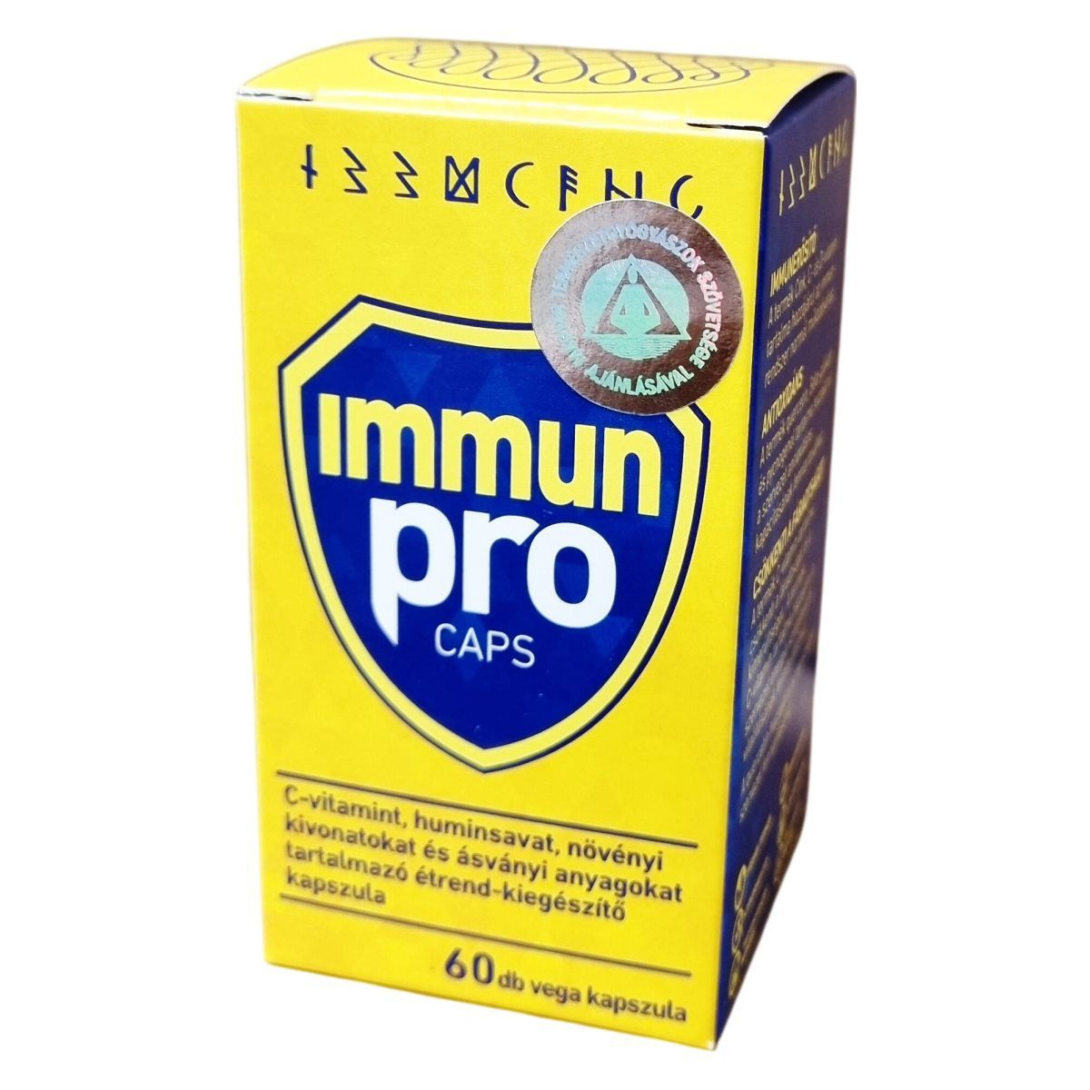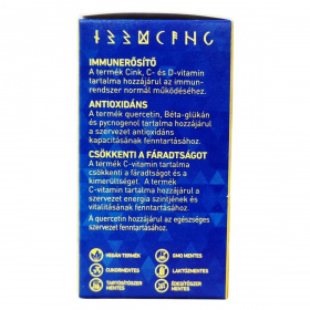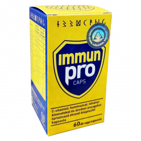 Az Immun Pro Caps egy multifunkcionális étrend-kiegészítő kapszula, amely C-vitamint, huminsavakat, növényi kivonatokat és ásványi anyagokat tartalmaz. Emellett quercetint, béta-glükánt, echinaceát, NAC-t, kurkumint, fenyőkéreg kivonatot és szelént is magában foglal. Ezek az összetevők hozzájárulhatnak az immunrendszer normál működéséhez, továbbá támogathatják a szervezet antioxidáns kapacitásának fenntartását. A C-vitamin például segíthet a fáradtság és kimerültség csökkentésében, valamint hozzájárulhat az energia szintjének és vitalitás fenntartásához. Quercetin további támogatást nyújthat az egészséges szervezet fenntartásában. A termék vegán, GMO-mentes, cukor- és laktózmentes, tartósítószer- és édesítőszermentes, ezáltal széles fogyasztói kör számára alkalmas. Az ajánlott napi adag két kapszula, amelyet bő folyadékkal javasolt bevenni. Tárolása során ügyelni kell a fénytől és hőtől való védelemre, illetve a gyermekektől való elzárásra.