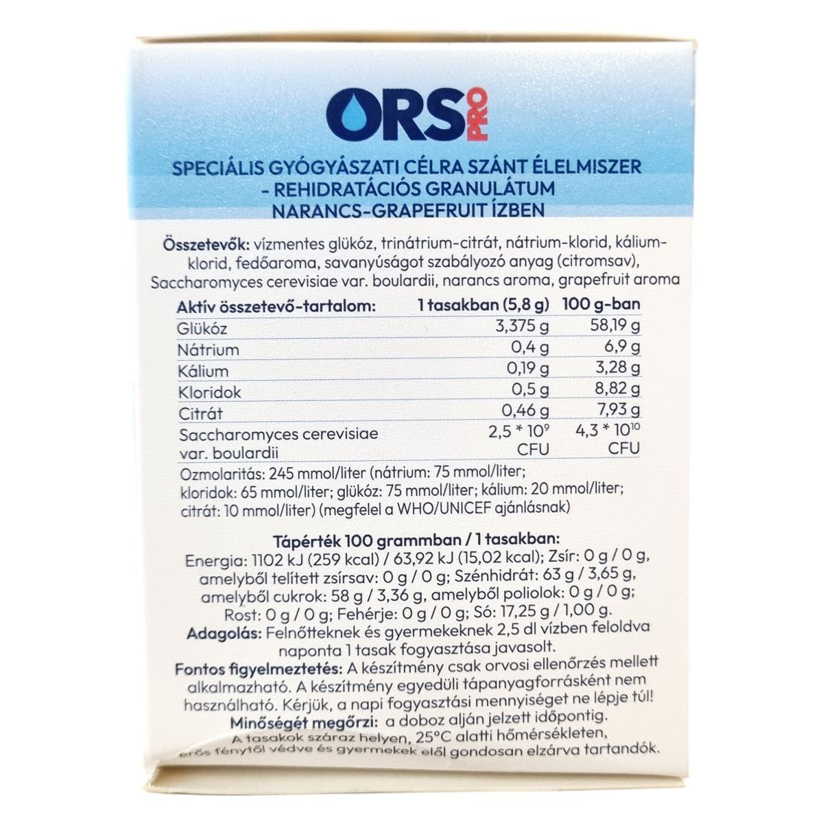 Az Innopharm ORS PRO rehidratációs granulátum a WHO/Unicef ajánlása alapján készített ásványi anyagokat tartalmazó termék, amely a vízben történő feloldás után megfelel az előírt elektrolit sók pótlási mennyiségének és ozmolaritásnak. A termék alkalmazása javasolt hasmenés, például antibiotikum asszociált hasmenés, hányás és magas láz esetén, mivel elektrolit tartalmának köszönhetően hozzájárulhat az elektrolit-háztartás helyreállításához. A granulátum enyhén sós ízű, narancs-grapefruit ízesítésű, és 10 db tasak kiszerelésben érhető el. A Saccharomyces cerevisiae var. boulardii élőflórait tartalmazó készítmény speciális gyógyászati célra szánt élelmiszer, amely az elektrolitok mellett probiotikus élőflórát is biztosít.