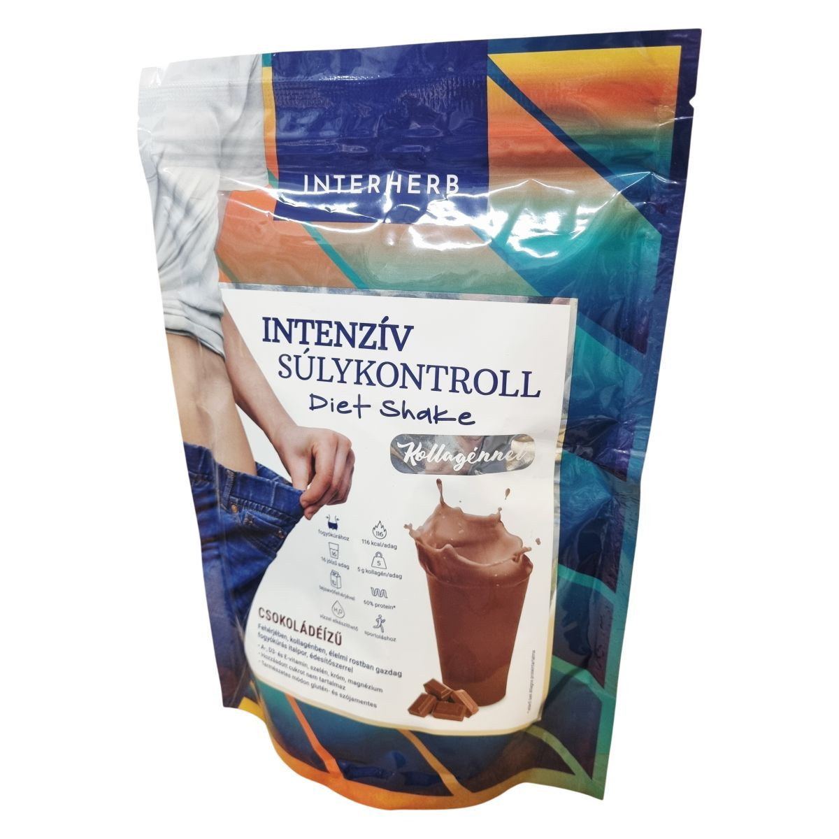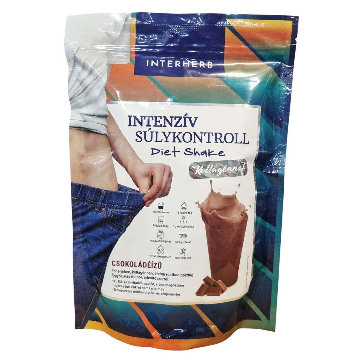 Az Interherb Intenzív Súlykontroll Diet Shake csokoládéízesítésű fogyókúrás italpor, amely alacsony cukortartalmú, vízzel vagy tejhelyettesítő növényi itallal elkészíthető shake vagy puding formájában fogyasztható. A termék fogyókúrák, diétás étrendek mellé ajánlott, mivel a benne lévő glükomannán hozzájárulhat a testtömeg csökkentéséhez, rosttartalma teltségérzetet biztosíthat, fehérjetartalma pedig a diéta során szükséges fehérjebevitelt segítheti. A nagydózisú szarvasmarha-kollagén jelenléte a bőr szépségének és az ízületek egészségének megőrzését támogathatja. A termék alkalmas sportolók, idősek és fogyókúrázók részére, illetve azoknak, akik étkezési nehézségekkel küzdenek. Nem tartalmaz hozzáadott cukrot, természetes módon glutén- és szójamentes, valamint vitaminokkal (A-, D3-, E-vitamin), szelénnel, krómmal és magnéziummal dúsított.