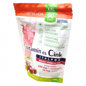 Az INTERHERB C-vitamin és Cink italpor egy meggy-vanília ízű étrend-kiegészítő, amelyet a szervezet megnövekedett vitamin- és ásványi anyag igényének kiegészítésére fejlesztettek ki. A termék jelentős mennyiségű C-vitamint és cinket tartalmaz, amelyek hozzájárulhatnak az immunrendszer normál működéséhez, a sejtek oxidatív stresszel szembeni védelméhez, valamint a fáradtság és kifáradás csökkentéséhez. A cink ezen felül támogathatja a normál szellemi működést, a bőr, haj és köröm egészséges állapotának fenntartását, valamint a normál látás fenntartását is. A termék 270 g-os kiszerelésben kapható, és 90 adag elkészítésére elegendő. A csomagolás 100%-ban újrahasznosítható, így környezetbarát választás lehet.