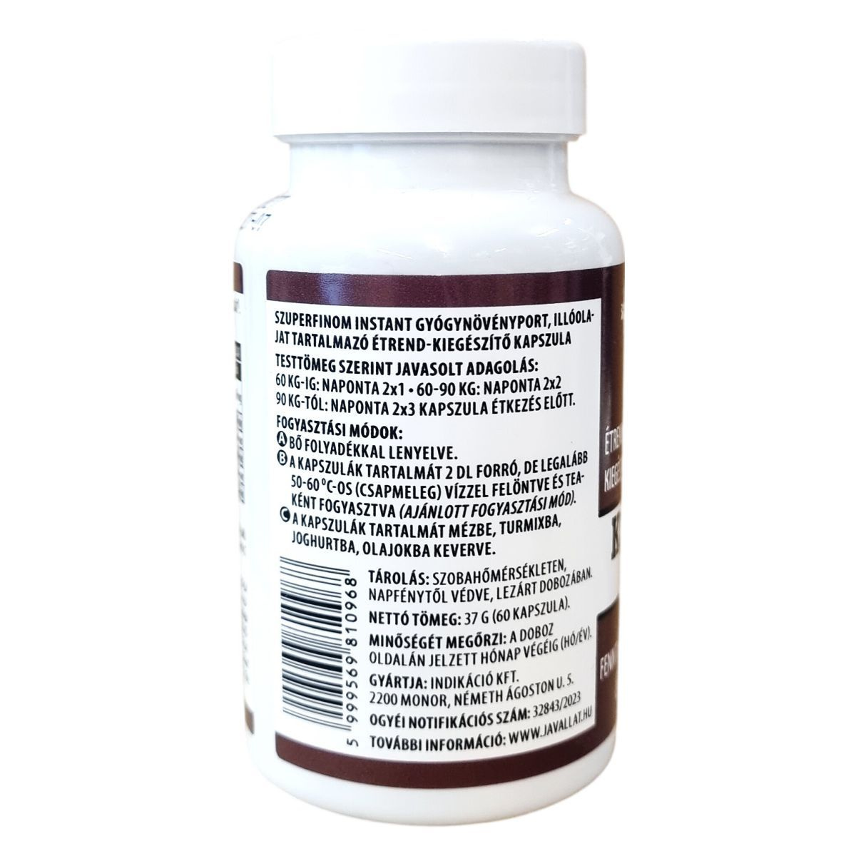 Szuperfinom instant gyógynövénypor, articsókalevél, görögszénamag, cickafark herba, medvehagymalevél, köménymagolaj, zselatin (kapszulahéj).