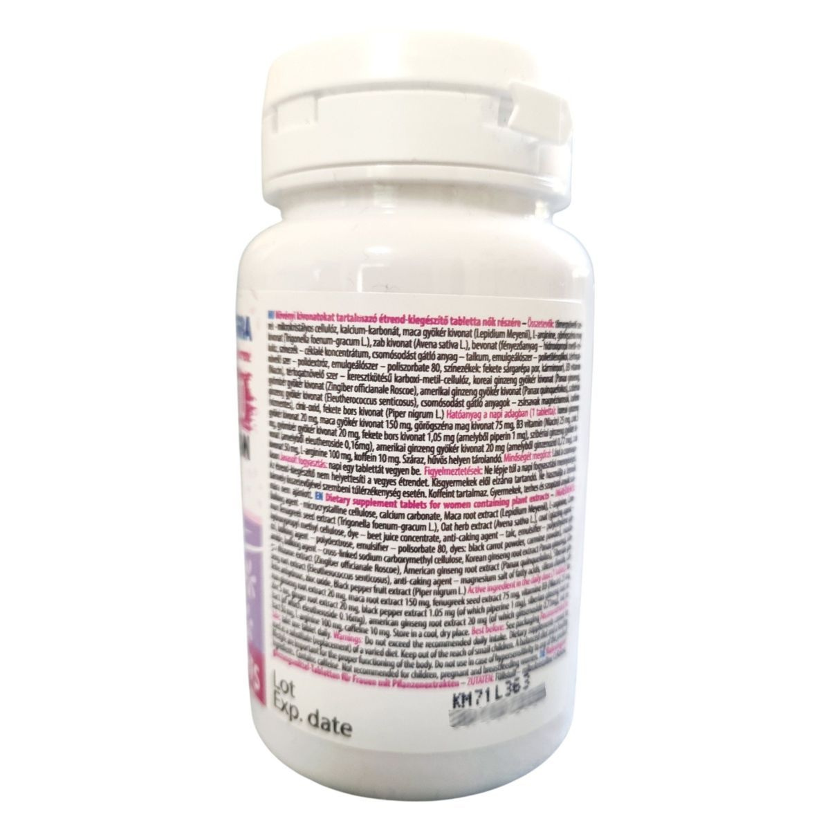 A Kamagra Libido Woman by Carene egy növényi hatóanyagokat tartalmazó étrend-kiegészítő, amely kifejezetten nők számára készült. Maca-gyökér, ginzeng, görögszéna, zabkivonat és fekete bors természetes kombinációjával segítheti a szervezet vitalitását, a hormonális egyensúlyt és a női energia megőrzését. A B3-vitamin és a cink hozzájárulhat a normál anyagcsere-folyamatokhoz és a sejtek védelméhez, míg a ginzengfélék támogathatják a fizikai és mentális frissességet. Kiegyensúlyozott étrend és egészséges életmód mellett rendszeres szedése támogathatja a női szervezet vitalitását és jó közérzetét.
