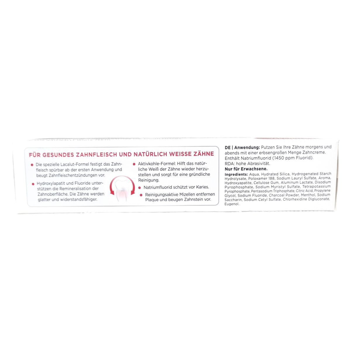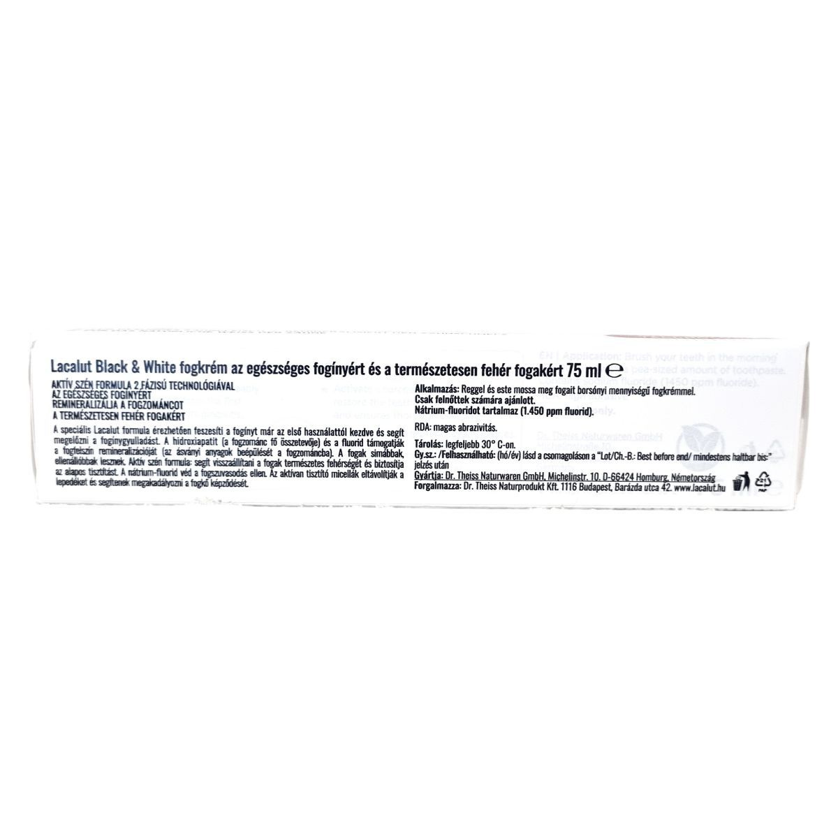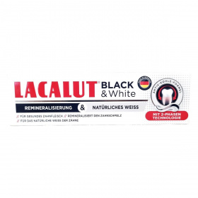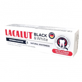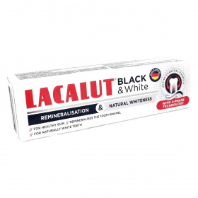 A Lacalut Black & White fogkrém segít megőrizni az egészséges fogínyt, erősíti és remineralizálja a fogzománcot, valamint támogatja a fogak természetes fehérségét aktív szén formulájával.