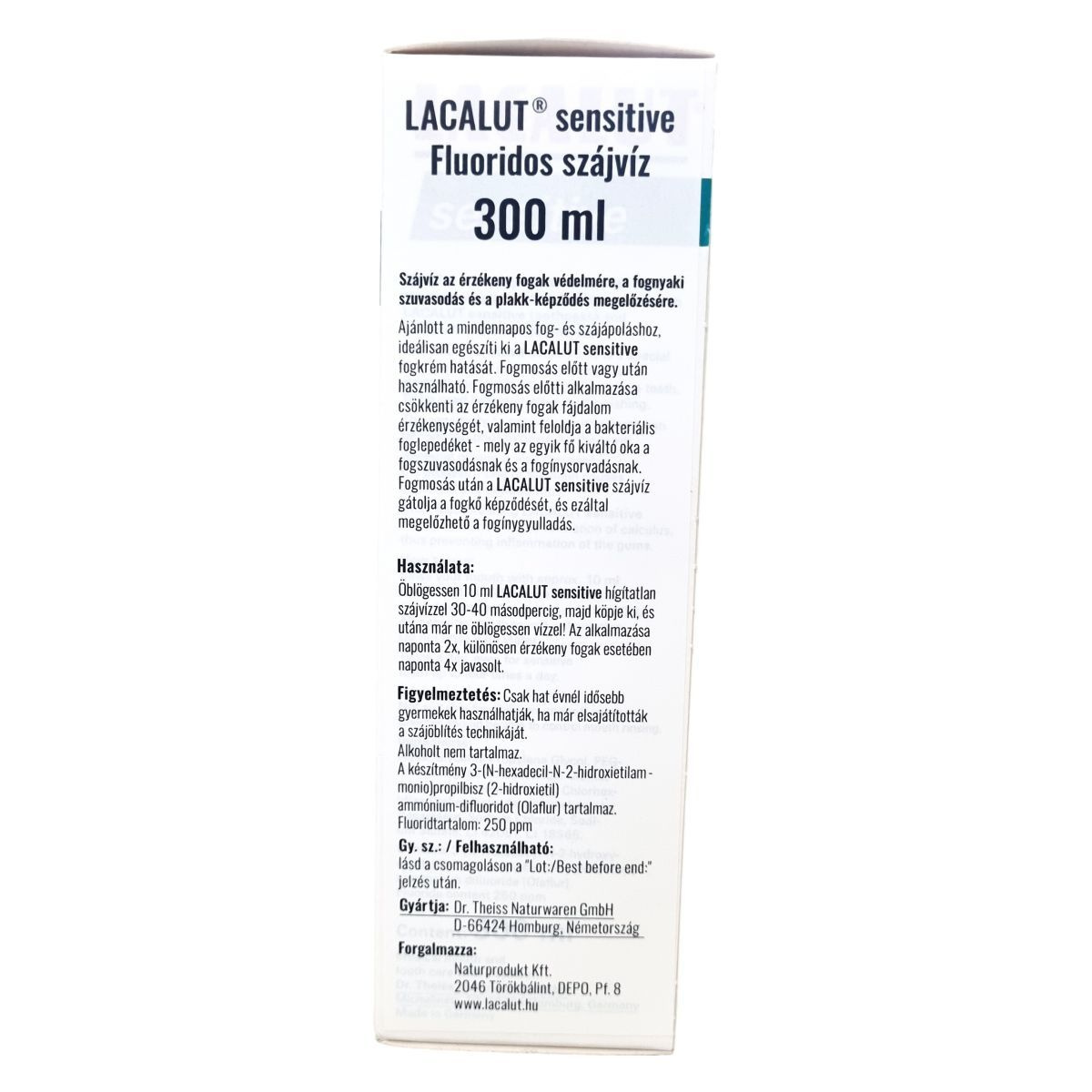 A LACALUT sensitive szájvíz kifejezetten az érzékeny fogak ápolására lett kifejlesztve, védelmet nyújt a fognyaki szuvasodással és plakk-képződéssel szemben. Használata fogmosás előtt csökkenti a fogérzékenységet és oldja a bakteriális lepedéket, amelyek fő kiváltó okai a fogszuvasodásnak és fogínysorvadásnak. Fogmosás után pedig gátolja a fogkő képződését, így megelőzi a fogínygyulladást. Az alkoholmentes készítmény aminfluoridot tartalmaz, amely hatékonyan védi a fogakat a károsodástól. A termék ideális kiegészítője a napi szájápolásnak, különösen a LACALUT sensitive fogkrém használatával együtt alkalmazva.