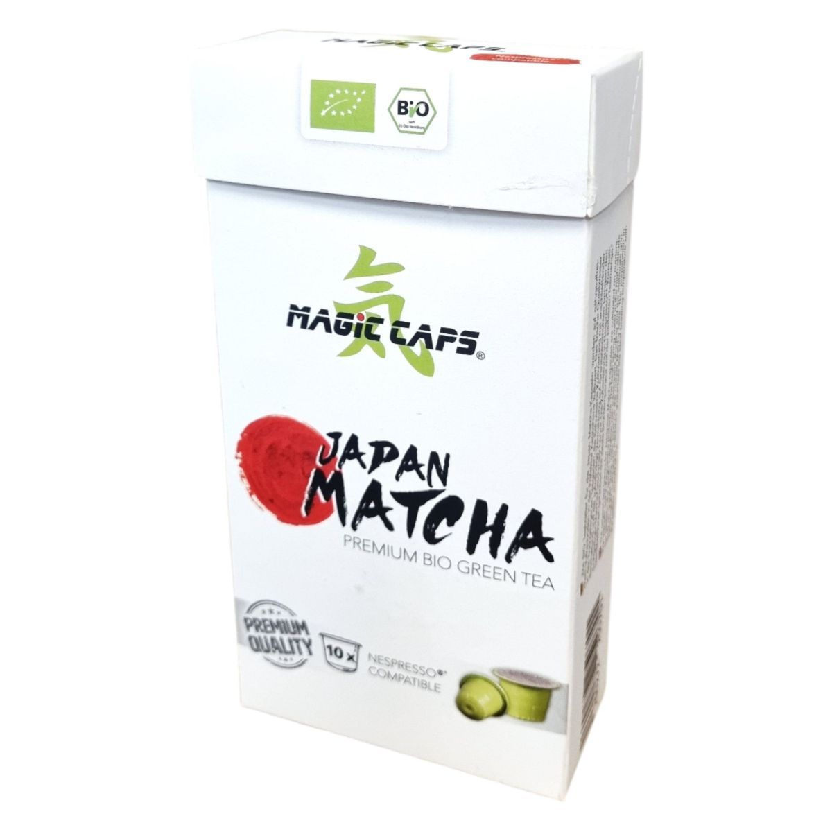 A Magic Caps Japan Matcha kapszulák bio minőségű, kézzel szedett japán tealevelekből készülnek. A Kagoshima régió vulkanikus talaján termesztett növények különleges tápanyagtartalma és az ősi kőmalmos feldolgozási technika együttesen biztosítják a tea élénk zöld színét és lágy, enyhén édeskés ízét. A termék Nespresso gépekkel kompatibilis, így gyorsan és egyszerűen készíthető el a tradicionális japán matcha tea modern formában.