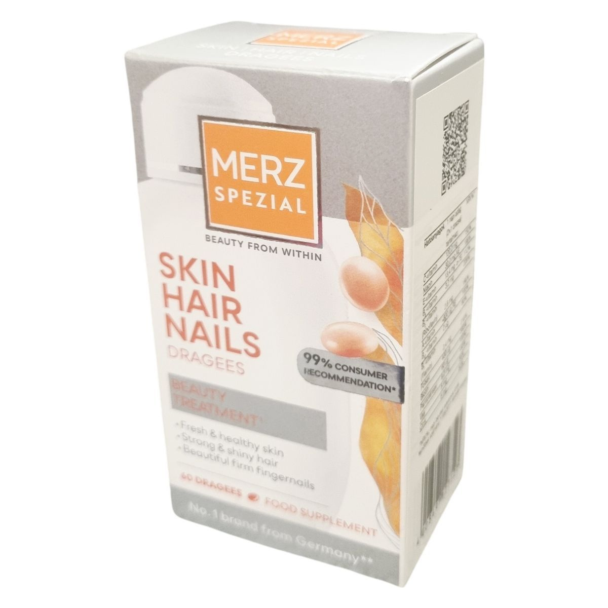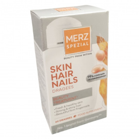 A Merz Spezial Drazsé vitaminok és mikrotápanyagok egyedülálló kombinációját tartalmazza, amelyek hozzájárulhatnak az egészséges haj, bőr és köröm megőrzéséhez. A C-vitamin hozzájárul a normál kollagénképződéshez és ezáltal a bőr normál állapotának fenntartásához. Az A-vitamin szintén támogatja a bőr megfelelő működését. A cink hozzájárulhat a köröm normál állapotának fenntartásához, míg a biotin és cink együttesen támogathatják a haj egészségét. A termék 99%-os fogyasztói ajánlással rendelkezik, amely egy 2014-es, 1000 nő bevonásával végzett felmérés eredménye. A Merz Spezial a német piac egyik vezető márkája ezen a területen. A drazsé készítmény elősegítheti a friss és egészséges bőr, erős és fényes haj, valamint szép, feszes körmök fenntartását, amit napi rendszerességgel, ajánlott adagban fogyasztva érhetünk el.