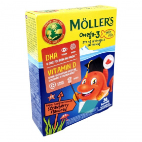 A Möllers halacska gumivitaminok az omega 3 zsírsavban található EPA, DHA és a hozzáadott D vitamin formájában tartalmaznak alapvető tápanyagokat a gyerekek részére. Eper ízben.