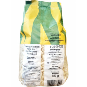 Gluténmentes, natúr puffasztott fehér rizs, amely könnyű, ropogós és természetes nassolnivalóként vagy ételek kiegészítőjeként fogyasztható.