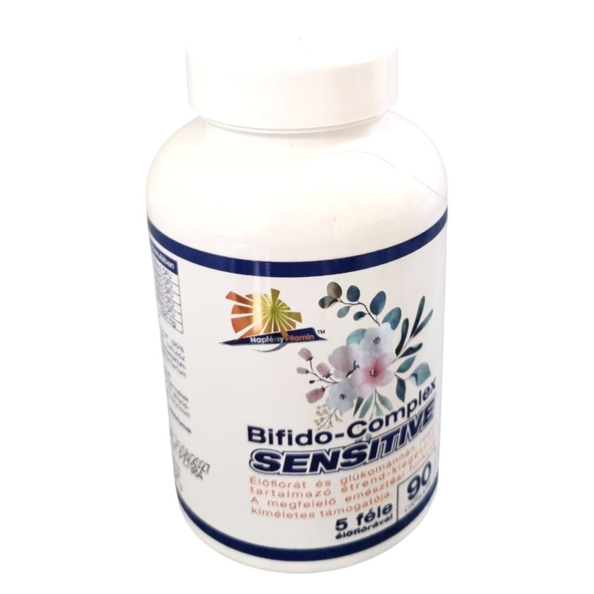 A Napfényvitamin™ Bifido-Complex SENSITIVE egy magyar termék, amely élőflórát és glükomannán rostot tartalmaz, és a megfelelő emésztési funkciók kíméletes támogatására szolgálhat. A termék 5 féle bifidobaktériumot tartalmaz, amelyek hozzájárulhatnak az emésztőrendszer egészségéhez. A termék vegán, és mentes lehet többek között a titán-dioxidtól, hisztamintól, laktóztól, gluténtól, cukortól és GMO-tól. A gyártási folyamat során keresztszennyeződésektől mentesen készülhet.
