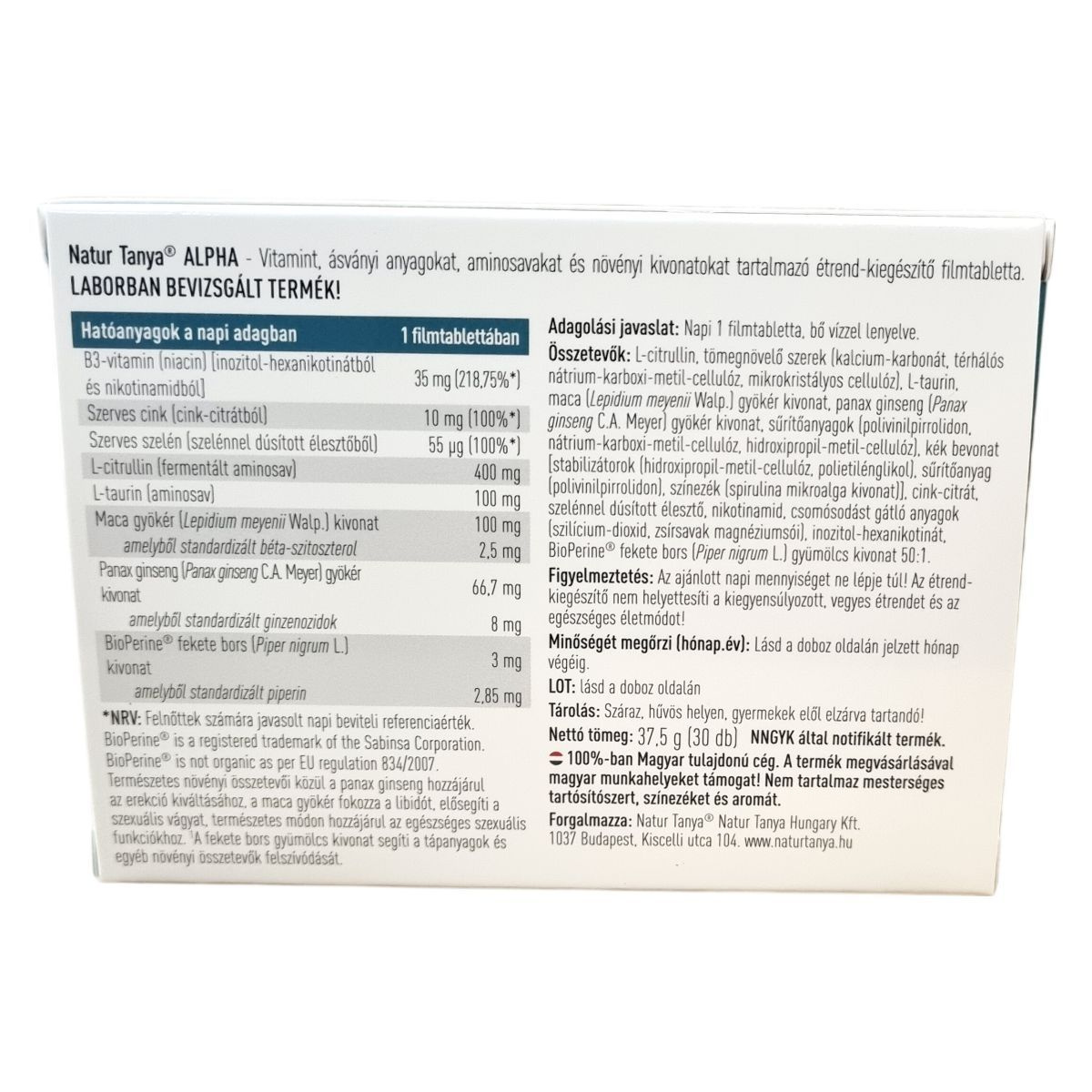Natur Tanya alpha férfi étrend-kiegészítő tabletta 30db leírása