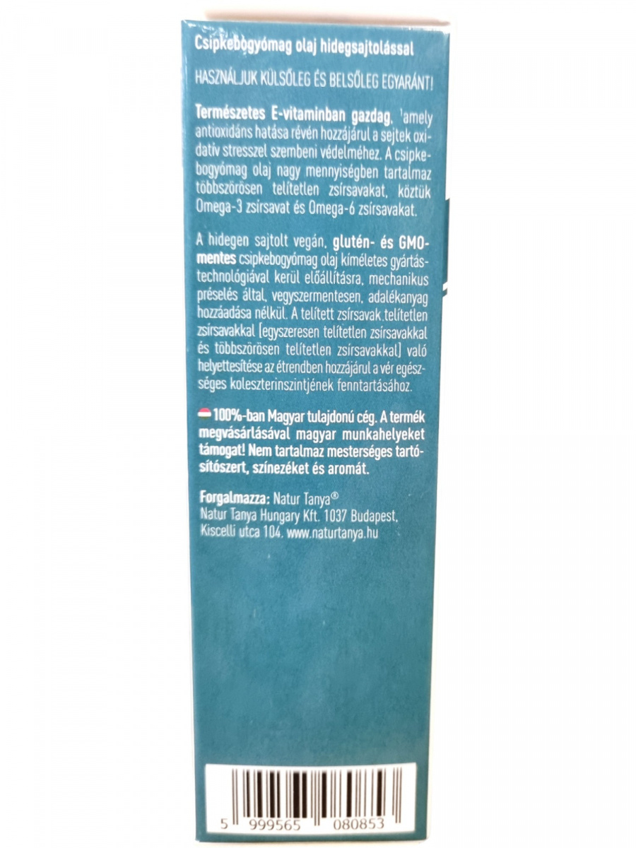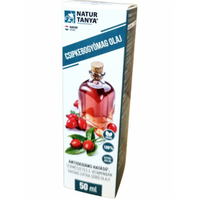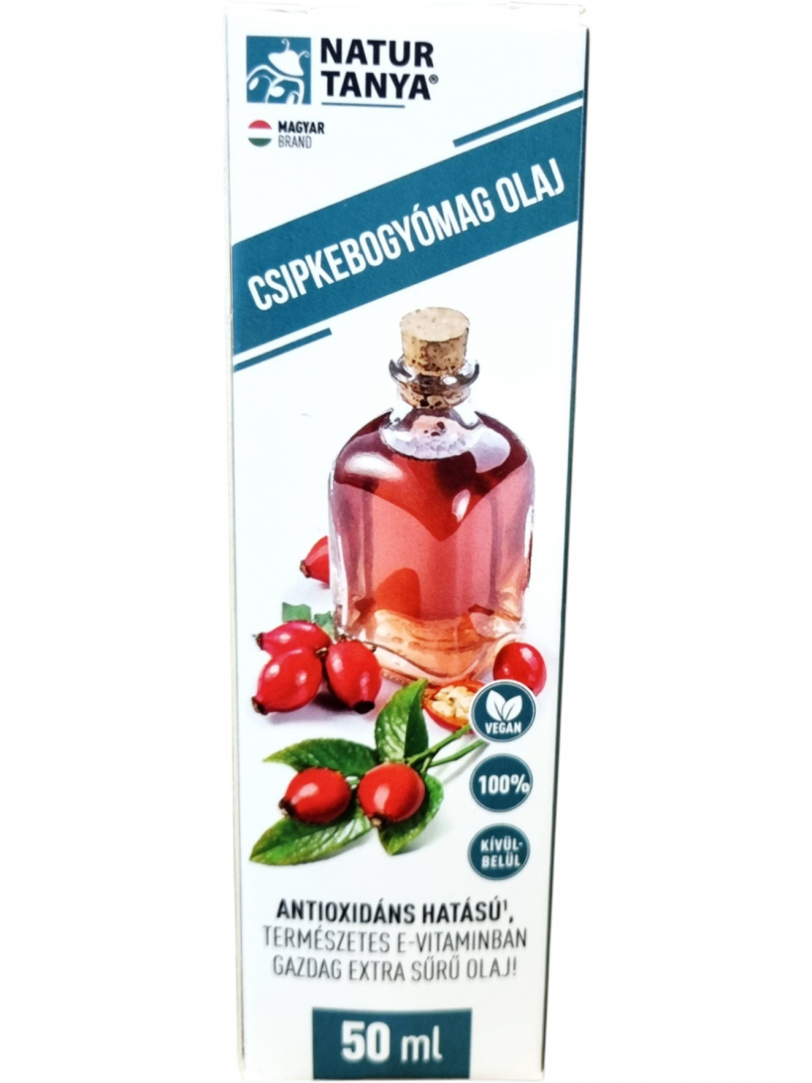 A Natur Tanya csipkebogyómag olaj hidegsajtolással készül, antioxidáns hatású és természetes E-vitaminban gazdag. A termék nagy mennyiségben tartalmaz többszörösen telítetlen zsírsavakat, köztük Omega-3 és Omega-6 zsírsavakat. A hidegen sajtolt eljárás kíméletes technológiával, mechanikus préselés útján, adalékanyag hozzáadása nélkül történik. A termék 100%-ban magyar tulajdonú cég előállításában készült, vásárlásával magyar munkahelyek támogatását segíti. Külsőleg alkalmazva tápláló olaj a bőr számára, belsőleg pedig hozzájárulhat az egészséges koleszterinszint fenntartásához.