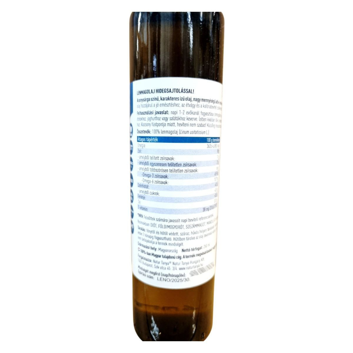 A Natur Tanya lenmagolaj hidegsajtolással készült, aranysárga színű és karakteres ízű olaj, amely nagy mennyiségű alfa-linolénsav forrás lehet. Az olaj felhasználható külsőleg masszírozó olajként, valamint belsőleg is, például joghurtba vagy salátákhoz keverve. Az alacsony füstpontja miatt hevíteni nem szabad. A termék nyomokban diót, földimogyorót, szezámmagot és mandulát tartalmazhat, ezért allergiások számára fontos az elővigyázatosság. Tárolása fénytől és hőtől védett helyen javasolt, felbontás után pedig hűtőben tárolandó.