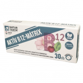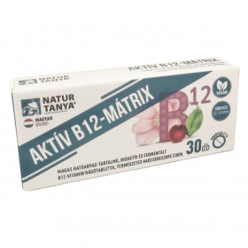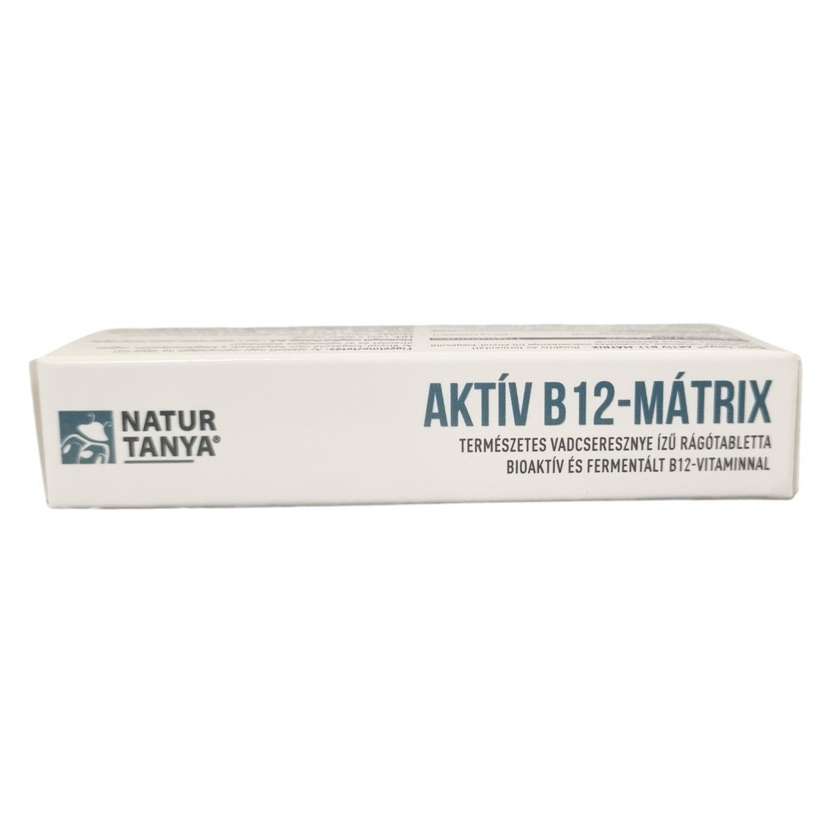 A Natur Tanya® Aktív B12-mátrix egy bioaktív és fermentált B12-vitamin tartalmú étrend-kiegészítő rágótabletta, mely természetes vadcseresznye ízzel készül. A termék 1000 µg B12-vitamint tartalmaz metilkobalamin és 5-deoxiadenozilkobalamin formájában, továbbá vadcseresznye gyümölcslé porral egészül ki. Édesítőszerként sztéviából származó szteviol-glikozidokat használ, és nem tartalmaz aromát, színezéket vagy mesterséges édesítőszert. A csomósodást gátló anyag zsír- és magnéziumsókat foglal magában, stabilizátorként eritrit szolgál. A termék 30 darabos kiszerelésben, 11,24 g nettó tömegben érhető el, és a Natur Tanya® által forgalmazott, 100%-ban magyar tulajdonú cég által gyártott termék, amely megvásárlásával magyar munkahelyek támogathatók.
