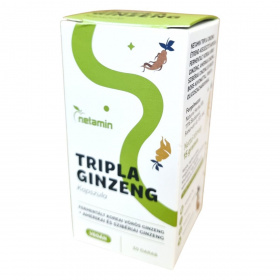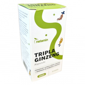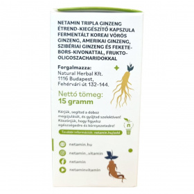 A Netamin Tripla Ginzeng kapszula háromféle ginzeng kivonatot tartalmazhat, amelyek közül a fermentált koreai vörös ginzeng, az amerikai ginzeng és a szibériai ginzeng (tajgagyökér) is szerepel. A termék fekete bors kivonattal és frukto-oligoszacharidokkal van kiegészítve, amelyek hozzájárulhatnak a termék hatékonyságához. A termék 100% vegán, és a gyártó javaslata szerint napi egy kapszula fogyasztása ajánlott. A termék forgalmazója a Natural Herbal Kft., és a vásárlók figyelmét felhívják a szelektív hulladékgyűjtés fontosságára is.
