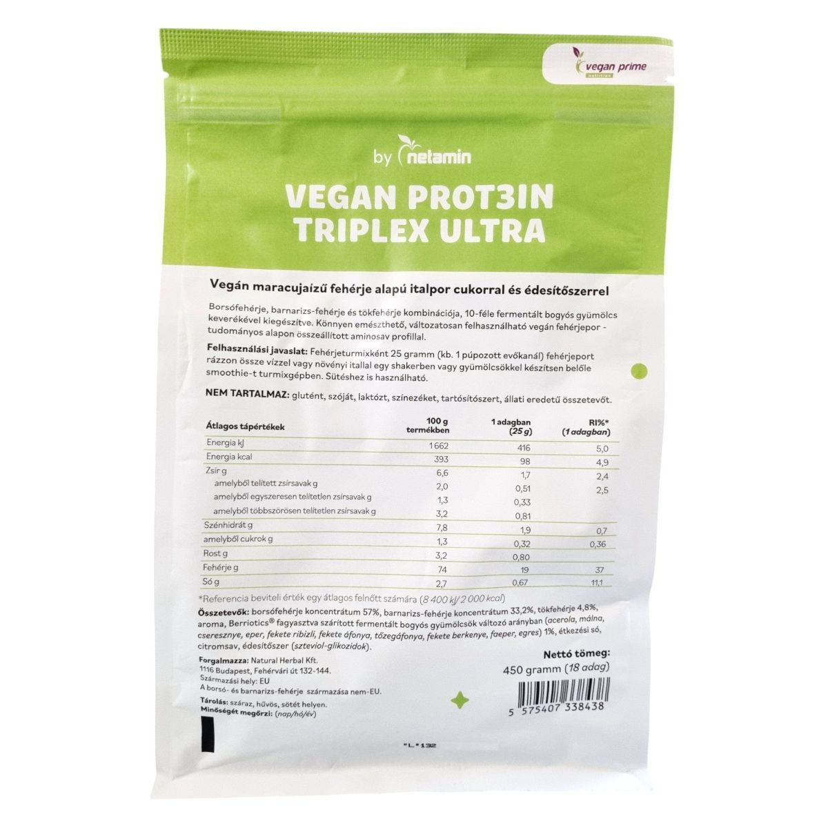 Netamin Vegan Prot3in Triplex fehérjepor - maracuja 450g leírása