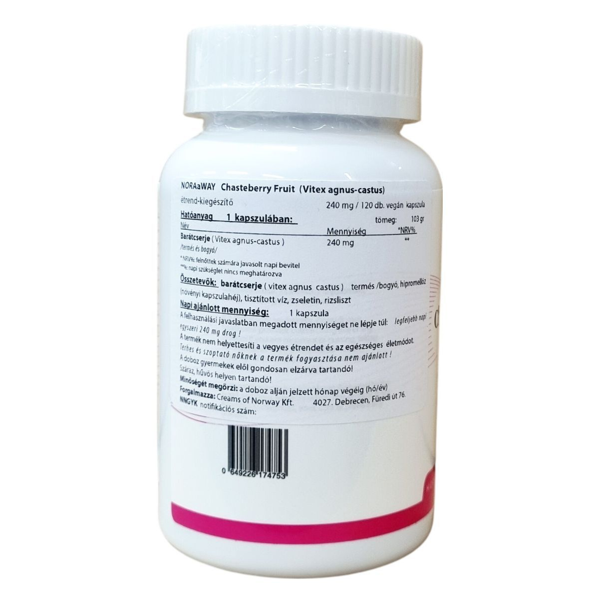 Összetétele: 100% barátcserje gyümölcs / termés (Vitex agnus castus) porítva, kapszulahéj (hypromellóz), tisztított víz, zselatin, rizsliszt