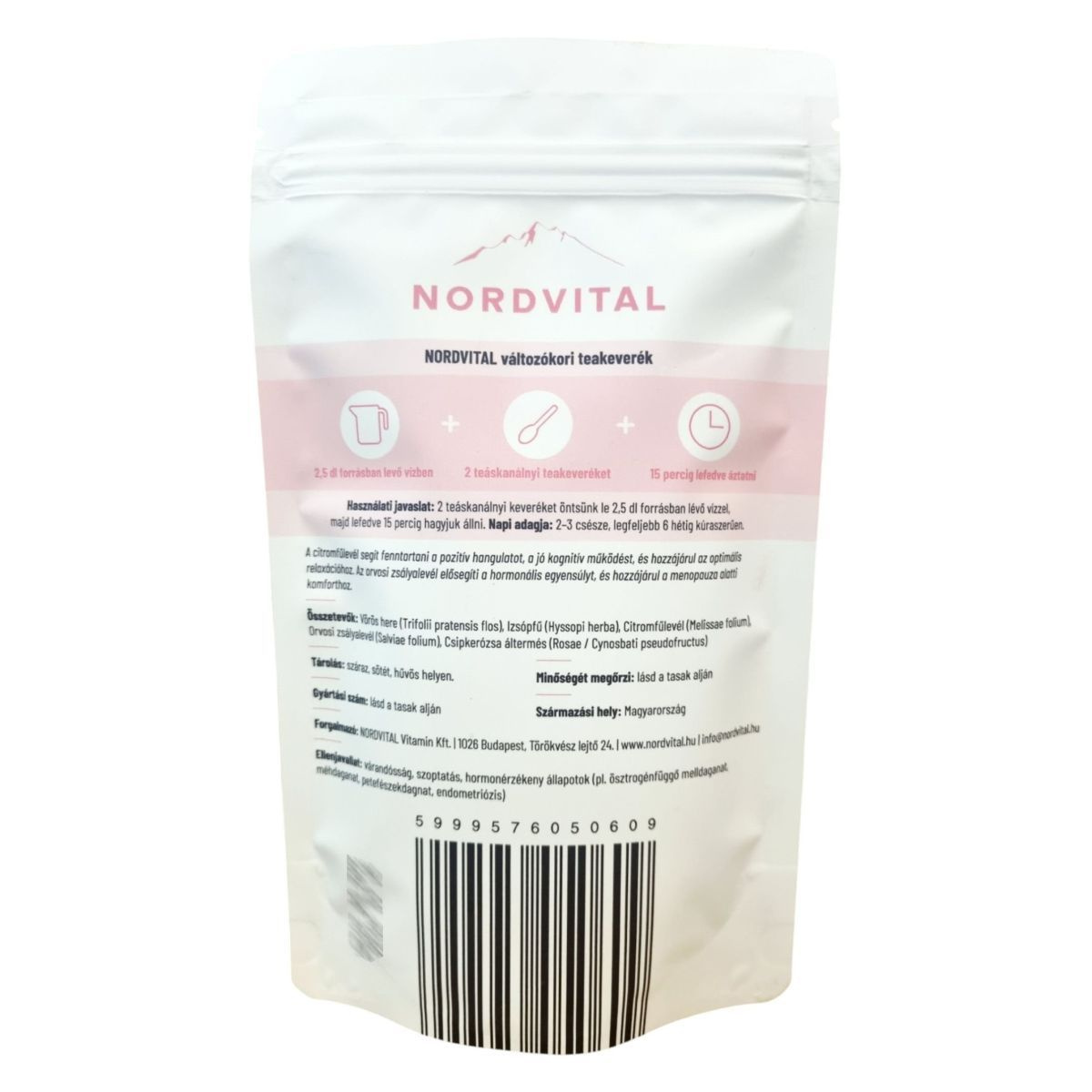 A NORDVITAL Lady Klimax változókori teakeverék 100% natúr gyógynövényekből készült, és célja, hogy támogassa a nők változókori komfortérzetét. A citromfűlevél hozzájárulhat a pozitív hangulat és a relaxáció fenntartásához, míg az orvosi zsályalevél segíthet a hormonális egyensúly elősegítésében. A termék használata kúraszerűen, legfeljebb 6 hétig ajánlott. Tárolása száraz, sötét, hűvös helyen javasolt. A termék nem ajánlott terhesség, szoptatás, illetve bizonyos hormonterápiás állapotok esetén.