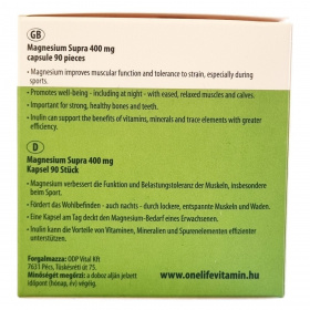 A Magnesium Supra kapszula magnézium-laktát formájában tartalmaz jól hasznosuló szerves magnéziumot, továbbá inulint, amely segítheti a vitaminok, ásványi anyagok és nyomelemek hatékonyabb hasznosulását. A magnézium hozzájárulhat a normál pszichológiai funkciók fenntartásához, a kifáradás csökkentéséhez, valamint szerepet játszhat a fehérjeszintézisben és a sejtosztódásban. A termék egy kapszulája lefedi egy felnőtt napi magnéziumszükségletét. A magnézium a normál izomműködés és a csontok egészsége szempontjából is fontos lehet, különösen sportolók számára, mivel javíthatja az izmok működését és a terhelhetőséget, valamint hozzájárulhat az izomláz enyhítéséhez és az általános jó közérzethez.