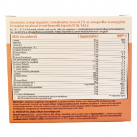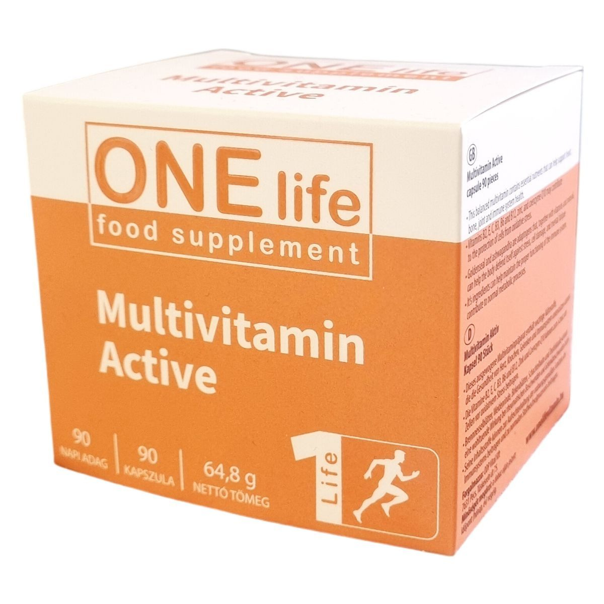 A ONE life Multivitamin Active kapszula olyan vitaminokat, ásványi anyagokat, nyomelemeket, koenzim Q10-et, valamint ashwagandha- és aranygyökér kivonatokat tartalmazó étrend-kiegészítő, amely hozzájárulhat az immunrendszer normál működéséhez, a mentális teljesítmény és szellemi frissesség fenntartásához, továbbá támogatja a szív-, a csont-, az ízületi- és az immunrendszer egészségét. A termék hatóanyagai között szerepelnek az A-, B-, C-, D-, E- és K-vitaminok, a cink, vas, réz, szelén, jód, magnézium és króm, amelyek fontos szerepet játszanak a szervezet normál anyagcsere-folyamataiban és a sejtek oxidatív stressz elleni védelmében. Az adaptogén növényi összetevők, mint a goldenseal és ashwagandha, segíthetik a szervezet védekezőképességét a stressz, a sejtkárosodás és a mentális fáradtság ellen. A kapszulák napi egyszeri bevétele javasolt, a készítmény szedése mellett ajánlott a változatos és kiegyensúlyozott étrend, valamint az egészséges életmód fenntartása.