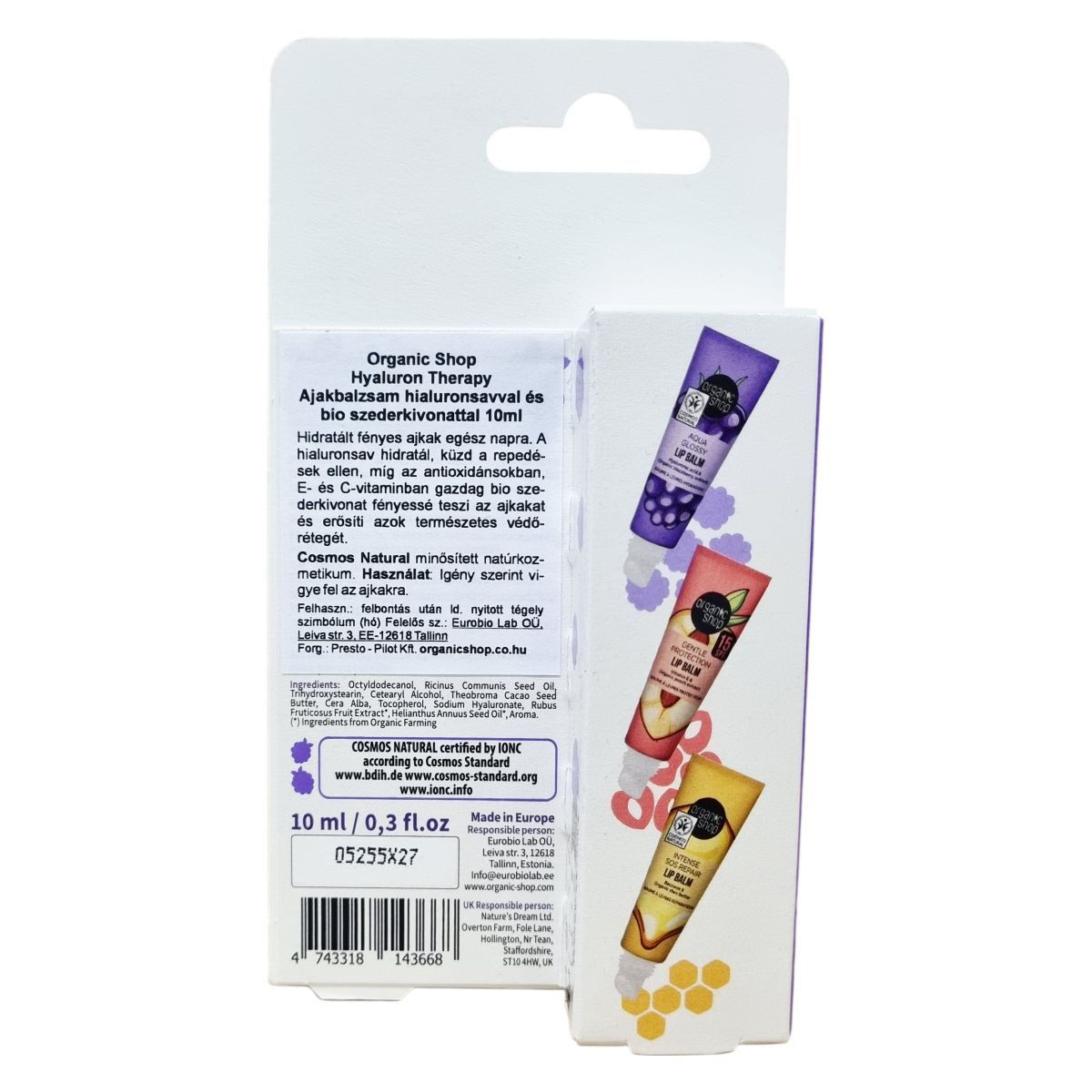A Cosmos Natural minősítéssel rendelkező natúrkozmetikum hialuronsavat és bio szederkivonatot tartalmaz, amely gazdag antioxidánsokban és vitaminokban, erősíti az ajkak természetes védőrétegét, valamint fényessé és egészségessé varázsolja azokat. A termék Made in Europe, intenzív SOS javító ajakbalzsamként ismert, amely 100%-ban természetes eredetű összetevőkből áll.