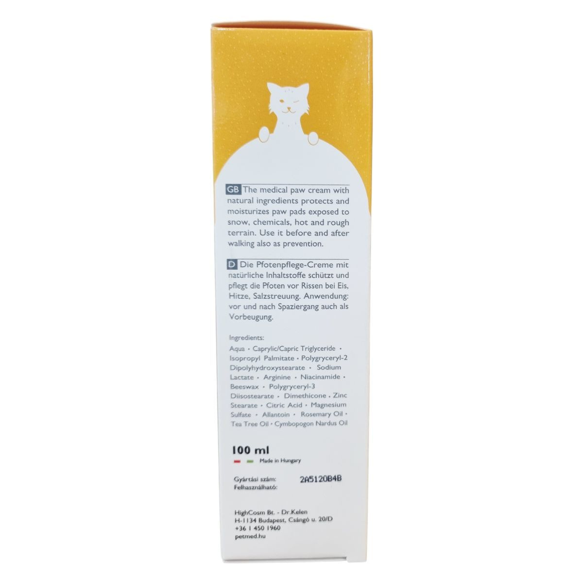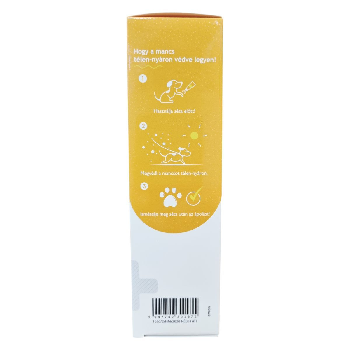 Közvetlen séta előtt kenje be a talppárnákat és a köztes részeket. Séta után bő vízzel mossa le a szennyeződést, majd óvatosan törölje szárazra a lábfejet, és ápolás céljából krémezze újra a mancsot. Külsőleg alkalmazandó.