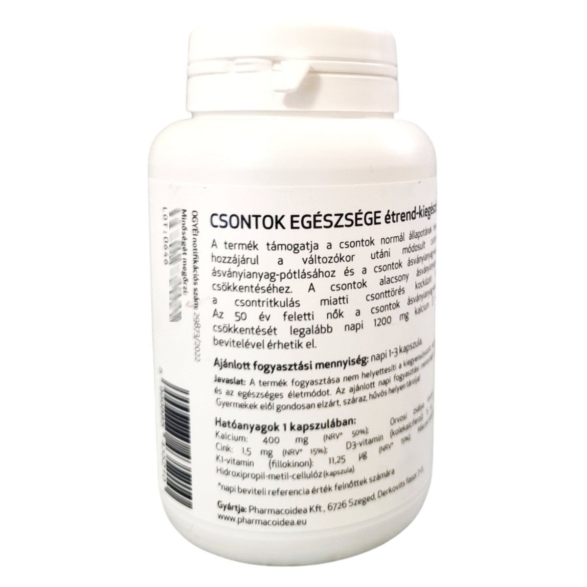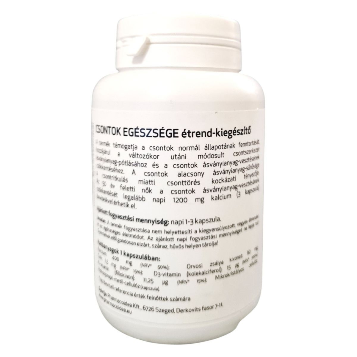 A CSONTOK EGÉSZSÉGE étrend-kiegészítő komplex összetételével támogathatja a csontok egészségét. A termék kalciumot, orvosi zsálya kivonatot, cinket, D3-vitamint és K1-vitamint tartalmaz, amelyek hozzájárulhatnak a csontok normál állapotának fenntartásához, különösen a változókor utáni időszakban. Az 50 év feletti nők számára különösen ajánlott, mivel a csontok ásványianyag-veszteségének csökkentését legalább napi 1200 mg kalcium (3 kapszula) bevitelével érhetik el. A termék nem helyettesíti a kiegyensúlyozott étrendet és az egészséges életmódot.
