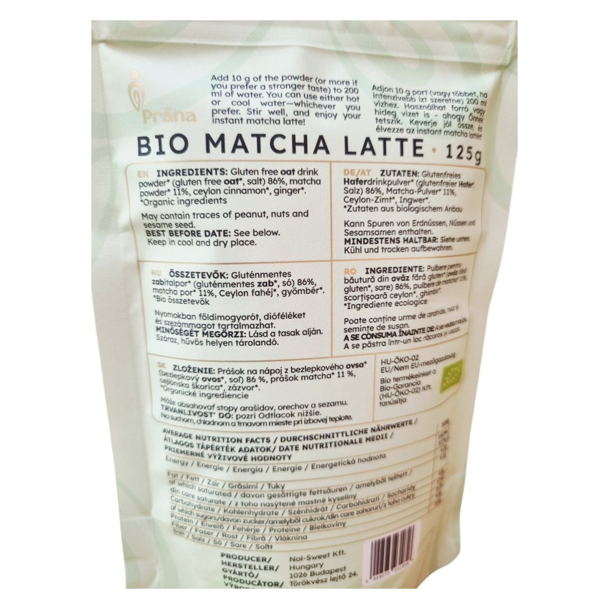 A Prána BIO MATCHA LATTE egy 100% természetes, gluténmentes és vegán italpor, amely ceremoniális minőségű matcha porból készül. Az italpor fő összetevője a gluténmentes zabitalpor, amelyet Ceylon fahéj és gyömbér egészít ki, hogy egyedülálló ízélményt nyújtson. A termék bio minősítését a Bio-Garancia (HU-ÖKO-02) Kft. tanúsítja. Az elkészítés egyszerű: csak adjon 10 g port 200 ml vízhez, keverje össze, és élvezze az ízletes matcha lattét. Tárolja száraz, hűvös helyen a minőség megőrzése érdekében.