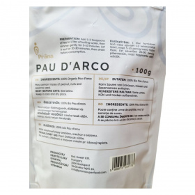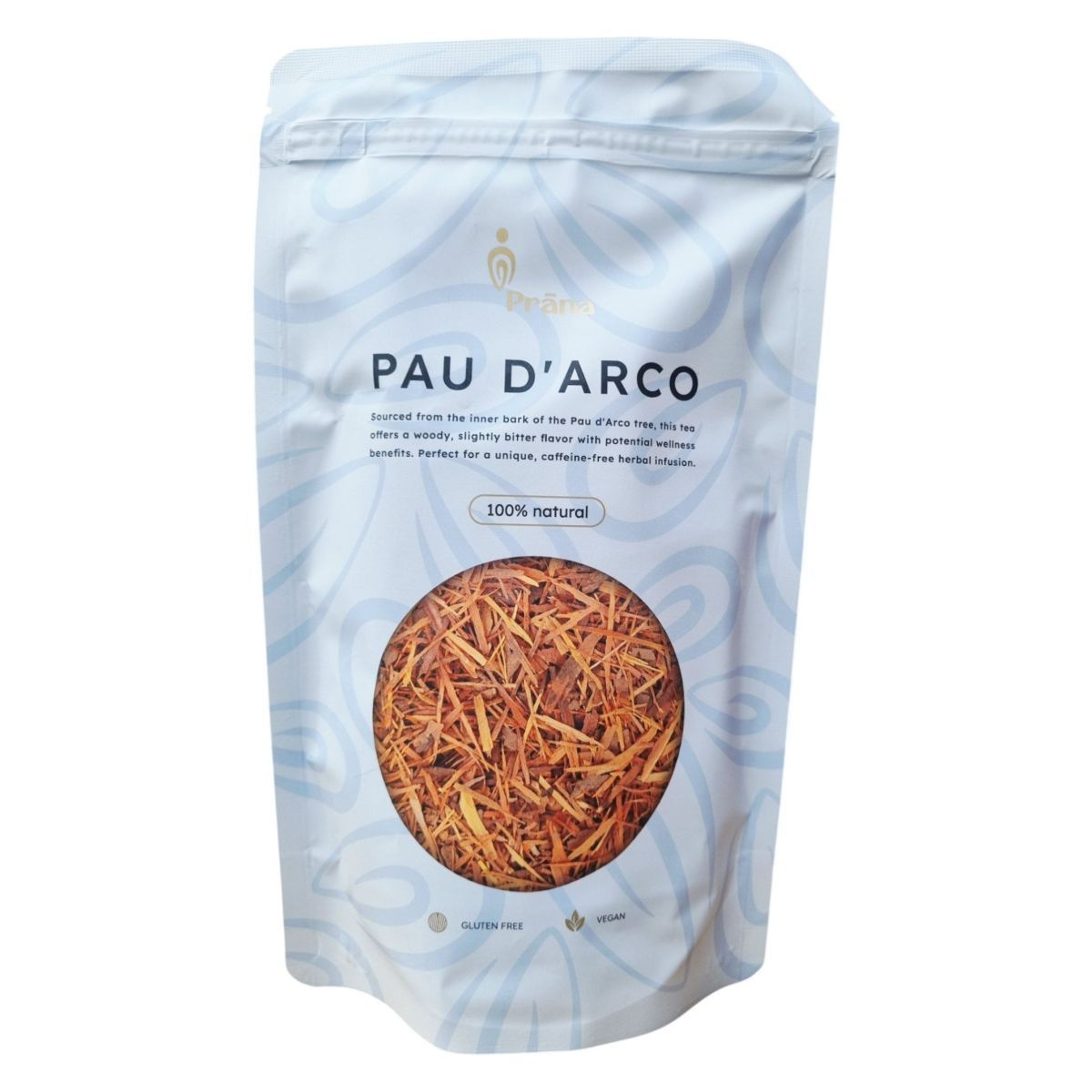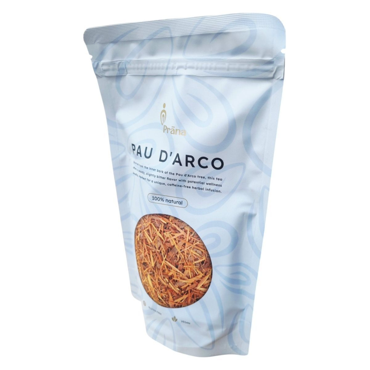 A Prāna PAU D'ARCO tea a Pau d'Arco fa belső kérgéből készül, amely különleges, fás és enyhén keserű ízvilágával tűnhet ki. A termék 100% természetes, bio és vegán, valamint gluténmentes, így széles körben fogyasztható. A tea elkészítése egyszerű: 1-2 teáskanálnyi mennyiséget ajánlott 1 liter forrásban levő vízhez adni, majd 5-10 percig lassú tűzön főzni. Ezt követően 20-30 percig pihentetjük, majd fogyasztás előtt szűrjük. A termék nyomokban földimogyorót, dióféléket és szezámmagot tartalmazhat, ezért allergiások figyeljenek erre. A tea tárolása száraz, hűvös helyen javasolt.