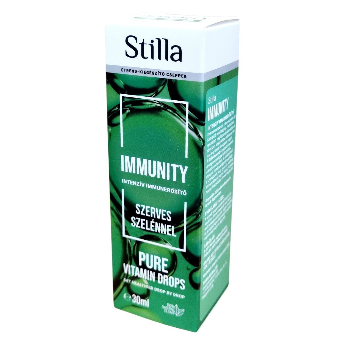 A Stilla Immunity cseppek szerves szelént és növényi hatóanyagokat tartalmaznak, amelyek támogathatják az immunrendszer hatékony működését. A termék vegán, vízalapú és magas felszívódású.