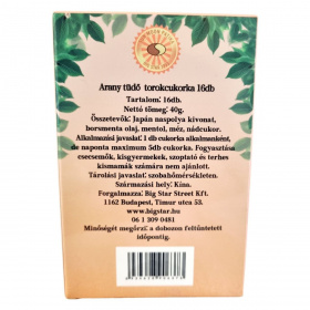 Az Arany tüdő cukorka 16 darabos kiszerelésben kapható, és Kínából származik. A termék japán naspolya kivonatot, borsmenta olajat, mentolt, mézet és nádcukrot tartalmaz. A cukorka fogyasztása nem ajánlott csecsemők, kisgyermekek, szoptató és terhes kismamák számára. A terméket szobahőmérsékleten kell tárolni. Forgalmazza a Big Star Street Kft., amelynek székhelye Budapest, Timur utca 53. További információkért látogasson el a www.bigstar.hu weboldalra vagy hívja a 06 1 309 0481 telefonszámot.