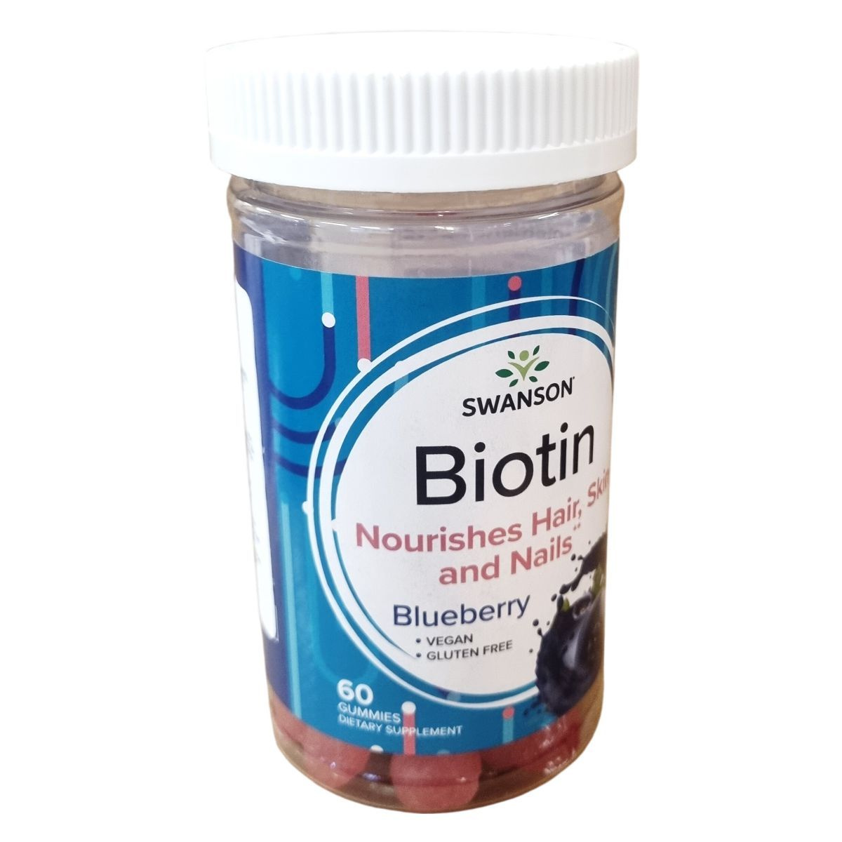 A SWANSON® Biotin gumivitamin Blueberry ízesítéssel készül az Egyesült Államokban. Egy adag 2 gumivitamint tartalmaz, melyek egyenként 2500 mcg biotint biztosítanak, ami az ajánlott napi bevitel 5000%-a. A termék nátriumot is tartalmaz, emellett glükóz szirupból, cukorból, pektinből, citromsavból, valamint természetes áfonya és citrom ízesítőkből és lila répalé koncentrátumból áll. A bevonat növényi olajat és karnauba viaszt tartalmaz. A termék vegán és gluténmentes, így különféle étrendi irányzatok mellett is fogyasztható. Fontos, hogy a napi ajánlott mennyiséget ne lépjük túl, és a termék nem helyettesíti a kiegyensúlyozott étrendet és az egészséges életmódot. Terhesség és szoptatás alatt a fogyasztása nem ajánlott. A dobozt gyermekektől elzárva kell tartani. A minőség megőrzése érdekében száraz, hűvös helyen tárolandó, a gyártástól számított 2 évig felhasználható.