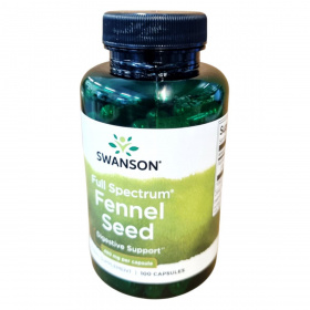 A Swanson Full Spectrum Fennel Seed egy 480 mg-os édeskömény magot tartalmazó étrend-kiegészítő, amelyet a Swanson Health Products gyárt. Az édeskömény hagyományosan az emésztőrendszer támogatására használható. A termék 100 kapszulát tartalmaz, és felnőttek számára napi egy kapszula fogyasztása javasolt étkezés előtt. Az összetevők között megtalálható a zselatin, kalcium-palmitát és szilícium-dioxid. Fontos, hogy a terméket száraz, hűvös helyen tároljuk, és ne lépjük túl az ajánlott napi mennyiséget. Az étrend-kiegészítő nem helyettesíti a vegyes étrendet és az egészséges életmódot.