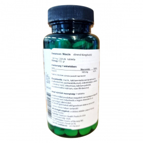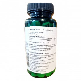 A Swanson Niacin étrend-kiegészítő 100 mg niacint tartalmaz tablettánként, amely hozzájárulhat az energia-anyagcsere és a szív- és érrendszer támogatásához. A termék 250 tablettát tartalmaz, így hosszú távú használatra is alkalmas lehet. Az összetevők között található a kalcium-karbonát, mikrokristályos cellulóz, sztearinsav, kálcium-palmitát és kroszkarmellóz-nátrium. A termék használata során fontos, hogy a napi ajánlott mennyiséget ne lépje túl, és az étrend-kiegészítő nem helyettesíti a vegyes étrendet és az egészséges életmódot. A terméket száraz, hűvös helyen kell tárolni, és gyermekek elől gondosan elzárva tartandó. A Swanson Health Products által gyártott és a Creams of Norway Kft. által forgalmazott termék OGYÉI notifikációs száma: 33178/2023.