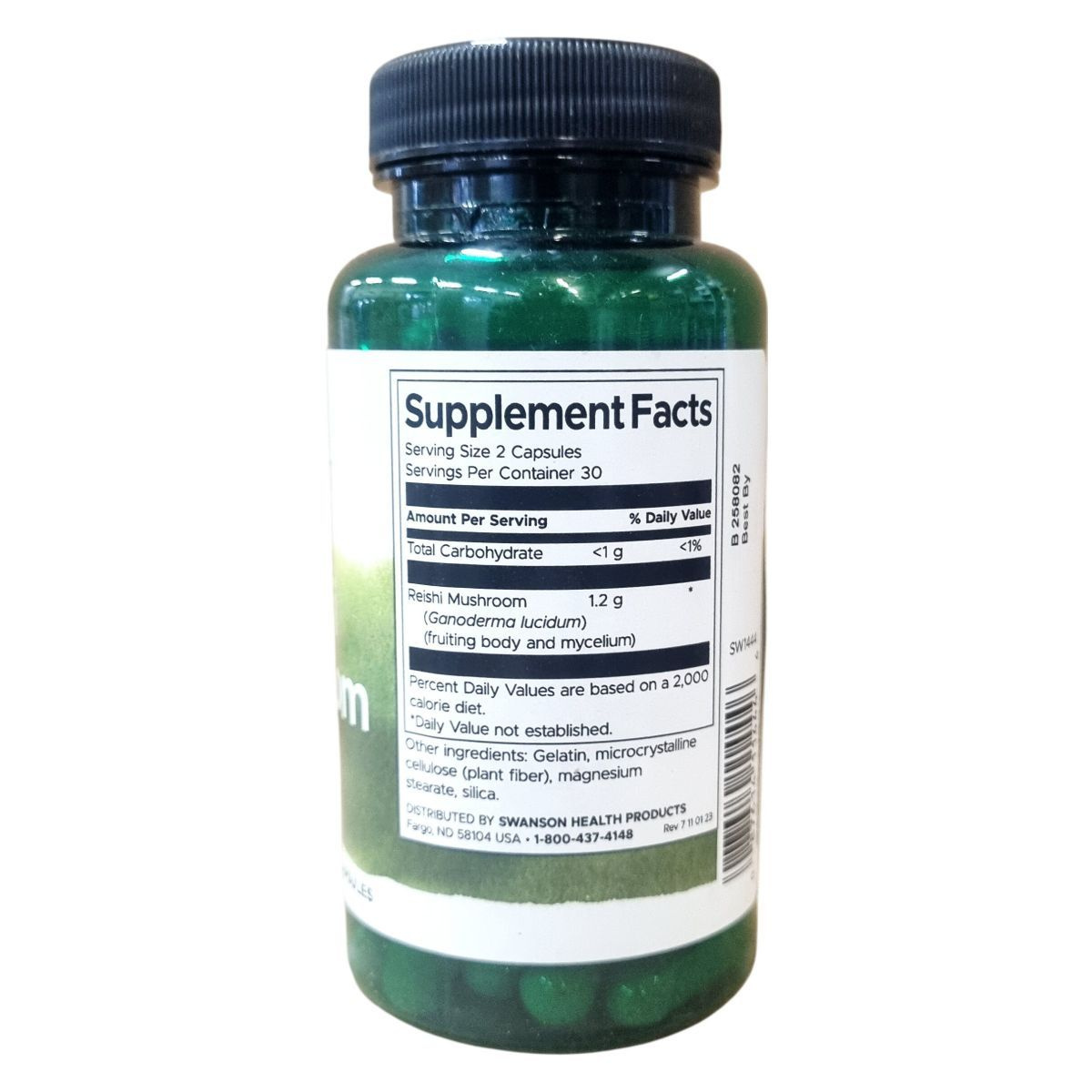 A Swanson Reishi (Ganoderma) gomba kapszula reishit, más néven ganodermát, pecsétviaszgombát tartalmaz.