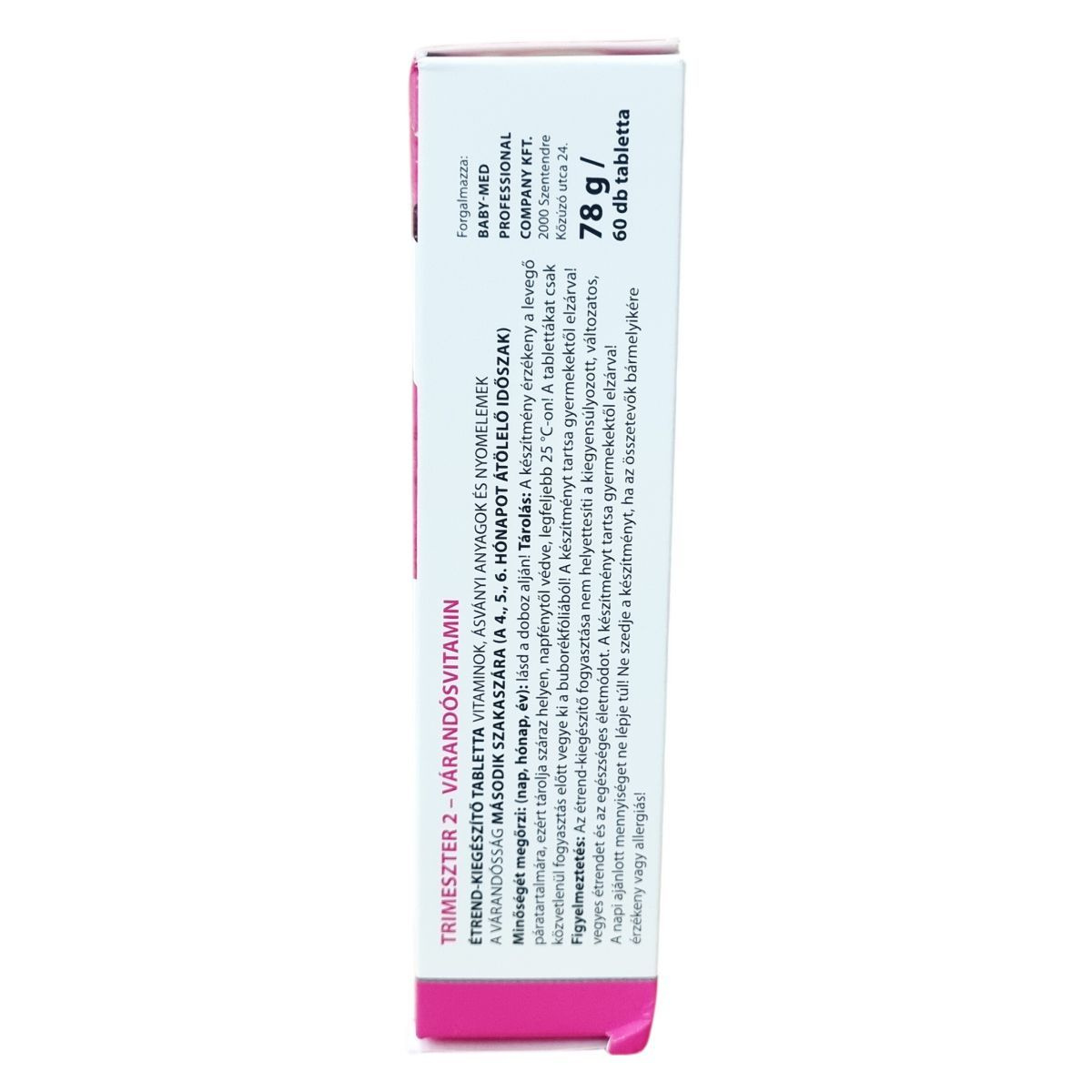 Szabadalommal védett termék. Magyar szülésznő találmánya (2014). Megújult formula új D3 vitaminnal. Szerves hatóanyagokat is tartalmaz. A várandósság második szakaszára (a 4., 5., 6. hónapot átfogó időszak) ajánlott étrend-kiegészítő. A második trimeszter a 12. hét végétől a 28. hétig tart. Az intenzív növekedés időszakában a magzat igényei megnövekednek. A vas hozzájárul a normál vörösvérsejt- és a hemoglobin képződéshez, valamint a fáradtság és a kifáradás csökkentéséhez. A D-vitamin valamint a kalcium és a foszfor részt vesz a normál csontozat és fogazat fenntartásában. A folát a terhesség alatt részt vesz az anyai szövetek növekedésében. Színezéket nem tartalmaz.