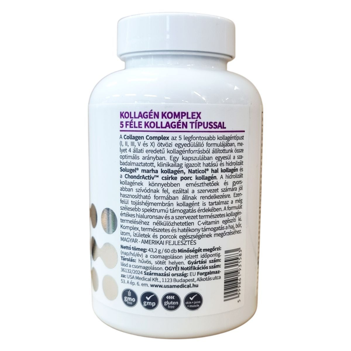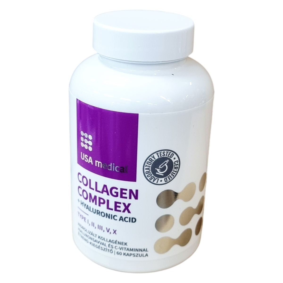 A Collagen Complex az 5 legfontosabb kollagéntípust (I, II, III, V és X) egyesíti négy állati eredetű forrásból: marha, hal, csirke porc és tojás membrán kollagénjeiből, egyedülálló, optimális arányban. Ez a hidrolizált formában előállított készítmény könnyen emészthető és gyorsan felszívódó tápanyagokat biztosít, bővíti a támogatást értékes hialuronsavval és a szervezet saját kollagéntermeléséhez elengedhetetlen C-vitaminnal. A termék magyar–amerikai fejlesztésű, laboratóriumban tesztelt és minősített, komplex és természetes összetevői révén hozzájárulhatnak a bőr, haj, izom, ízületek és porcok egészségének fenntartásához.