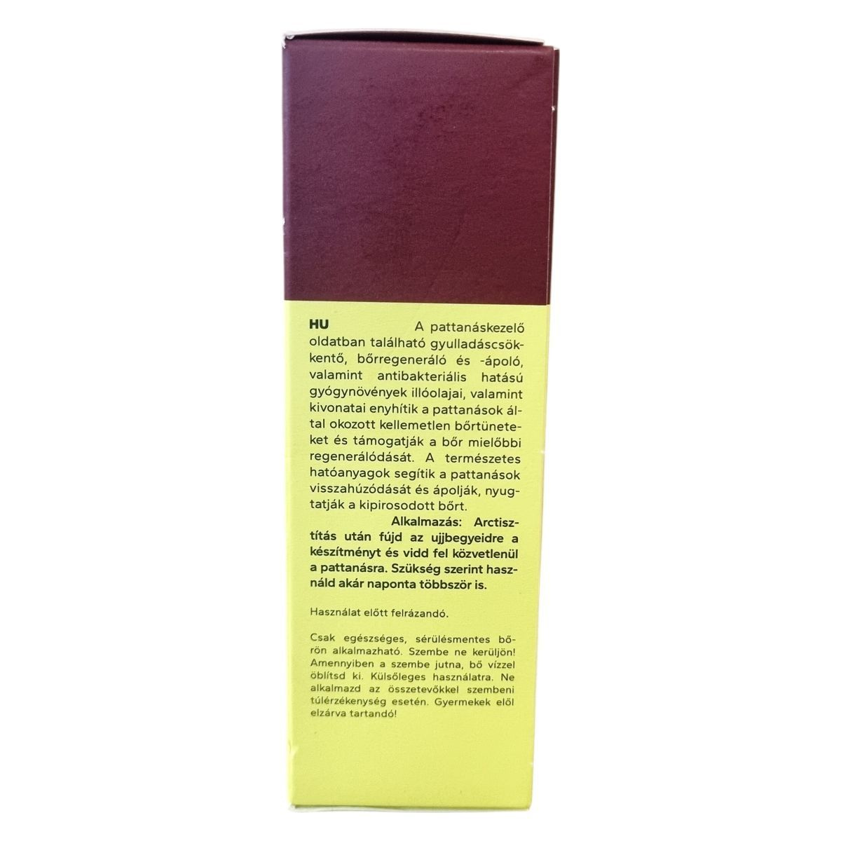 Helyileg alkalmazható gyógynövényes oldat pattanások és azok közvetlen környezetének kezelésére.