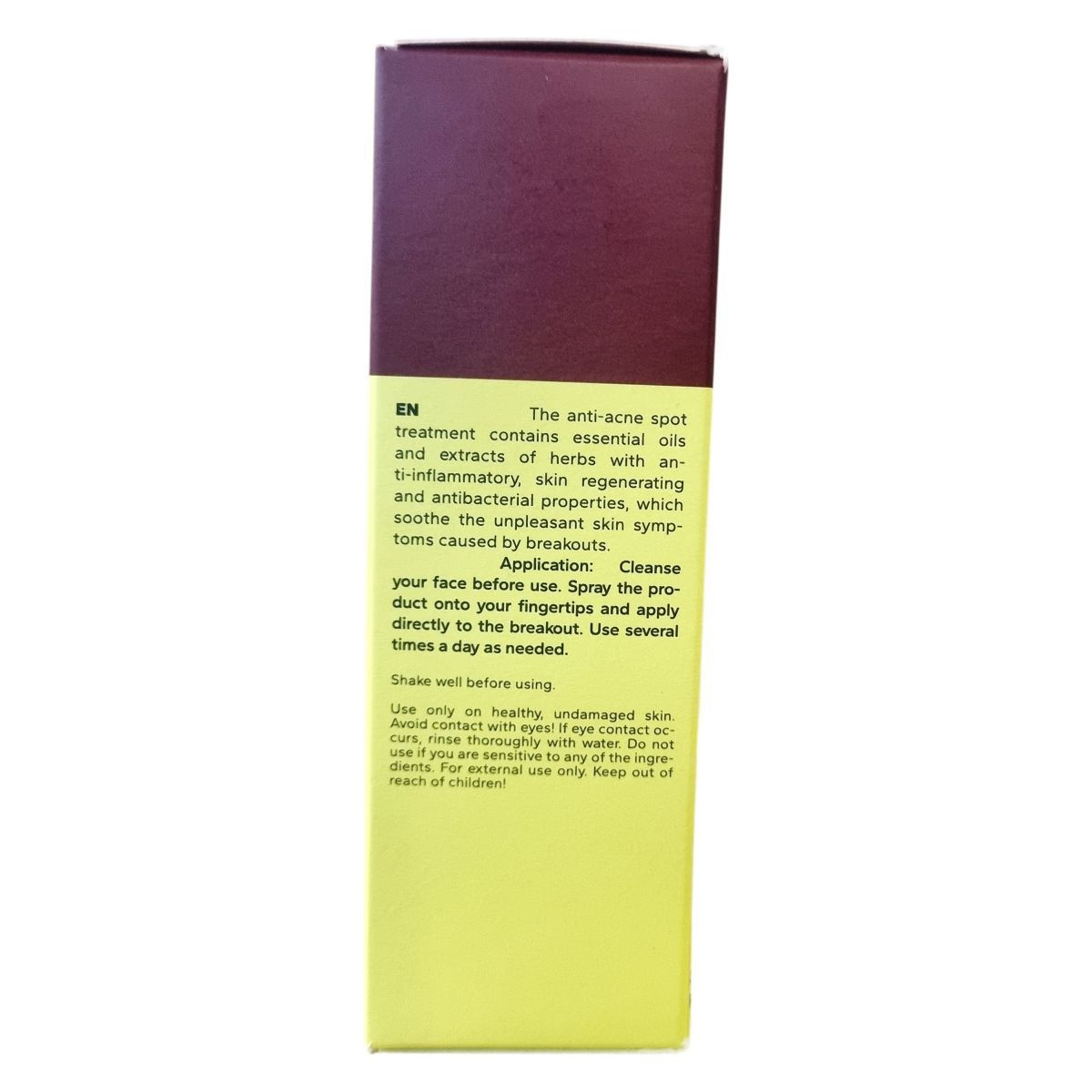 Arctisztítás után fújd az ujjbegyeidre a készítményt, majd közvetlenül a pattanásra vidd fel. Szükség szerint használd akár naponta többször is. Használat előtt felrázandó.