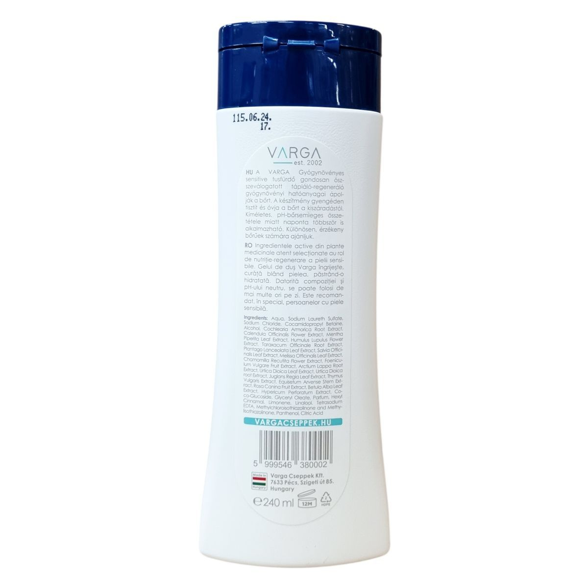 A VARGA Herbal Sensitive tusfürdő gondosan válogatott gyógynövényes összetevőket tartalmaz, melyek táplálják és regenerálják az érzékeny bőrt. A készítmény kíméletesen tisztít, megóvja a bőrt a kiszáradástól, és bőrsemleges pH-értékének köszönhetően naponta többször is alkalmazható. A benne található gyógynövény-kivonatok, mint például a körömvirág-, borsmenta-, kamilla- és csalán-kivonat összetett ápoló hatással bírnak, így különösen ajánlottak száraz és érzékeny bőrűek számára.
