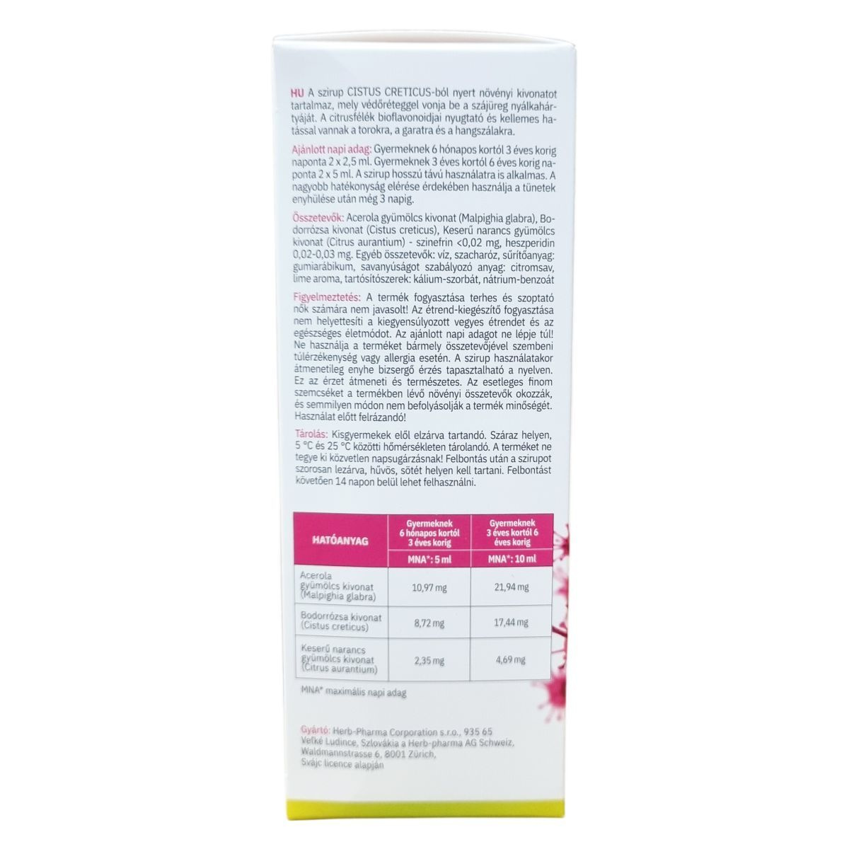 Bodorrózsa kivonat (Cistus creticus) 8,72 mg / 5 ml, 17,44 mg / 10 ml